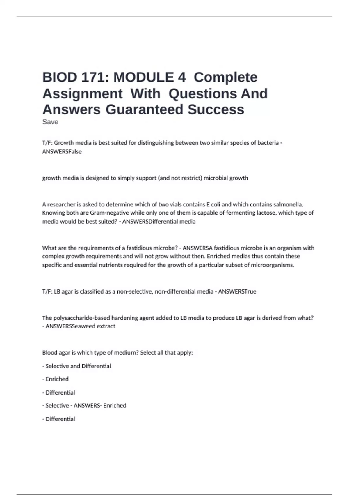 BIOD 171: MODULE 4 Complete Assignment With Questions And Answers Guaranteed Success Save
