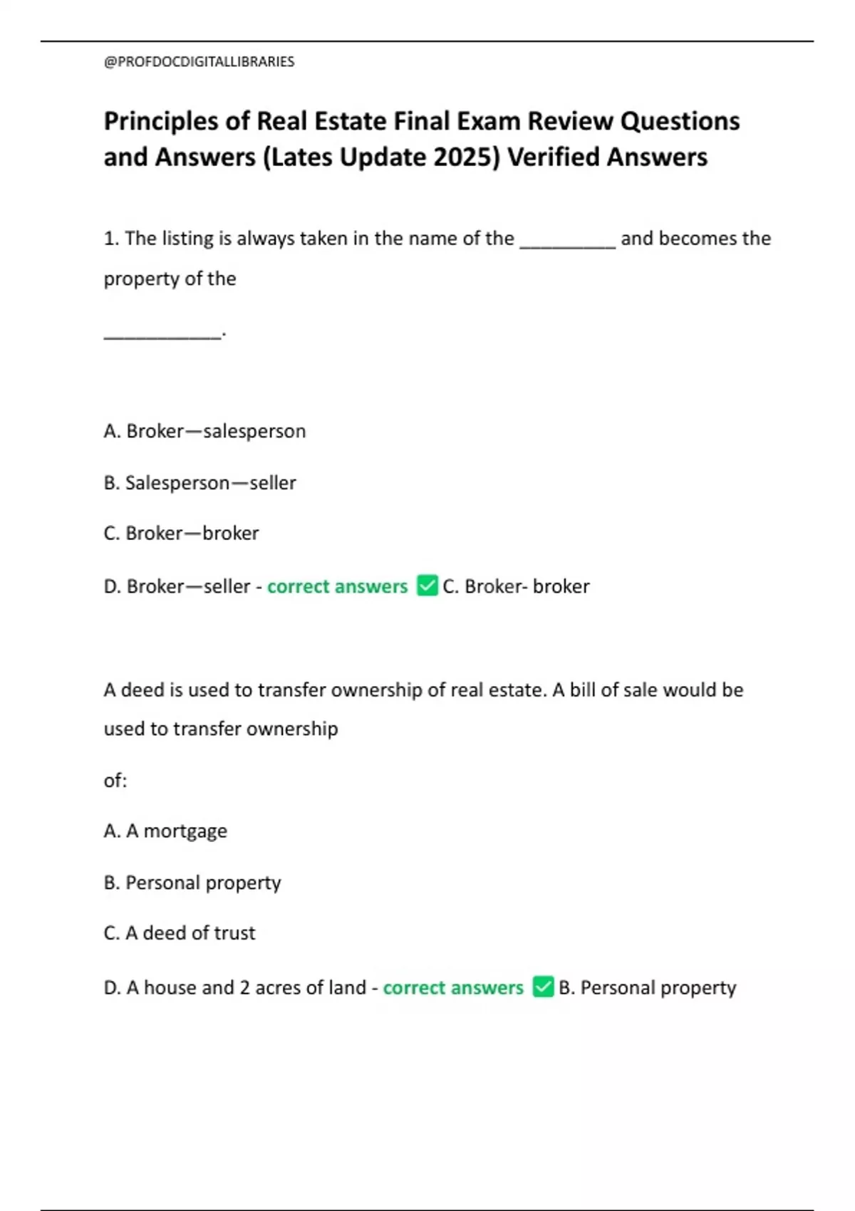 Principles of Real Estate Final Exam Review Questions and Answers (Lates Update 2025) Verified Answers , Guide A+