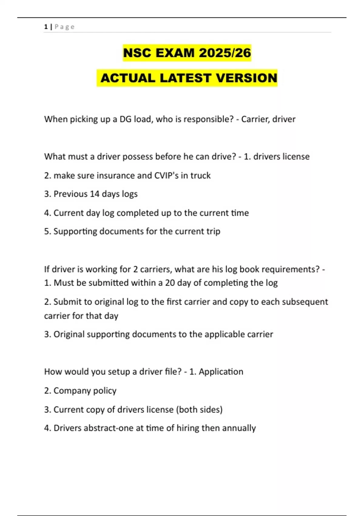 What must a driver possess before he can drive? - 1. drivers license