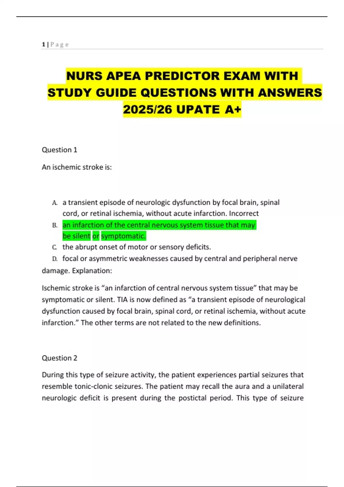 NURS APEA PREDICTOR EXAM WITH