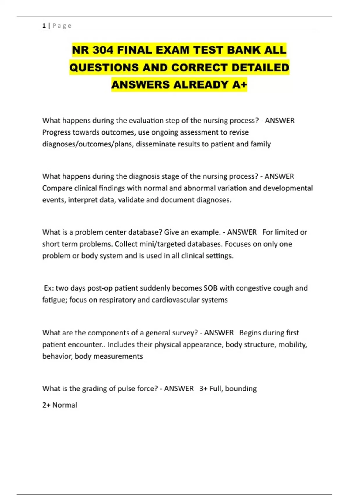 NR 304 FINAL EXAM TEST BANK ALL QUESTIONS AND CORRECT DETAILED ANSWERS ALREADY A+