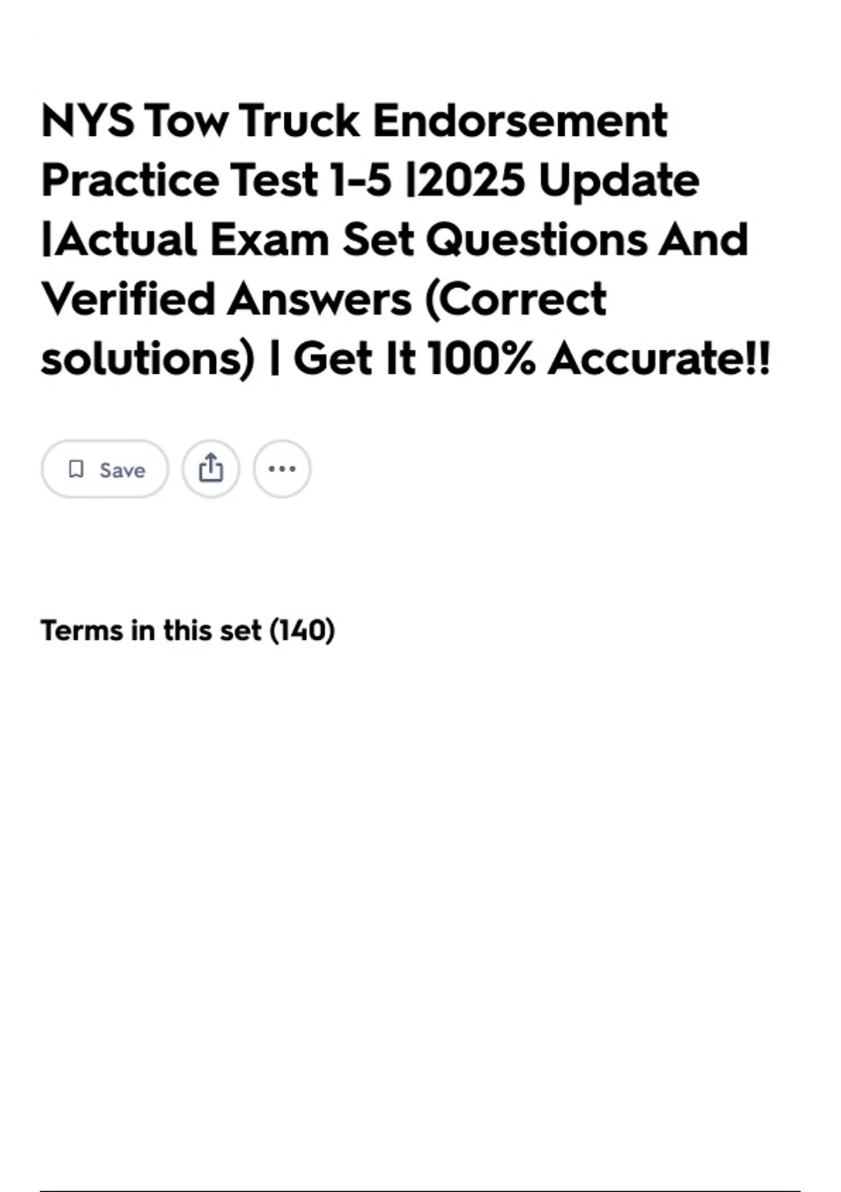NYS Tow Truck Endorsement Practice Test 1-5 |2025 Update |Actual Exam Set Questions And Verified Answers (Correct solutions) | Get It 100% Accurate!!