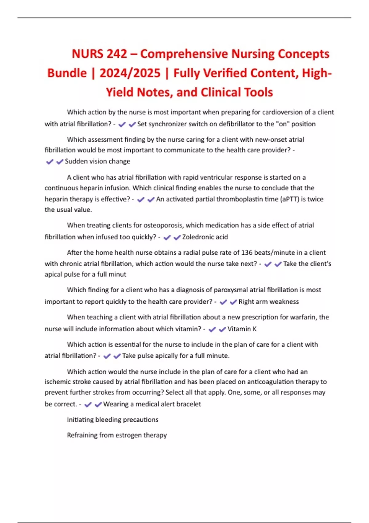 NURS 242 – Comprehensive Nursing Concepts Bundle | 2024/2025 | Fully Verified Content, High- Yield Notes, and Clinical Tools