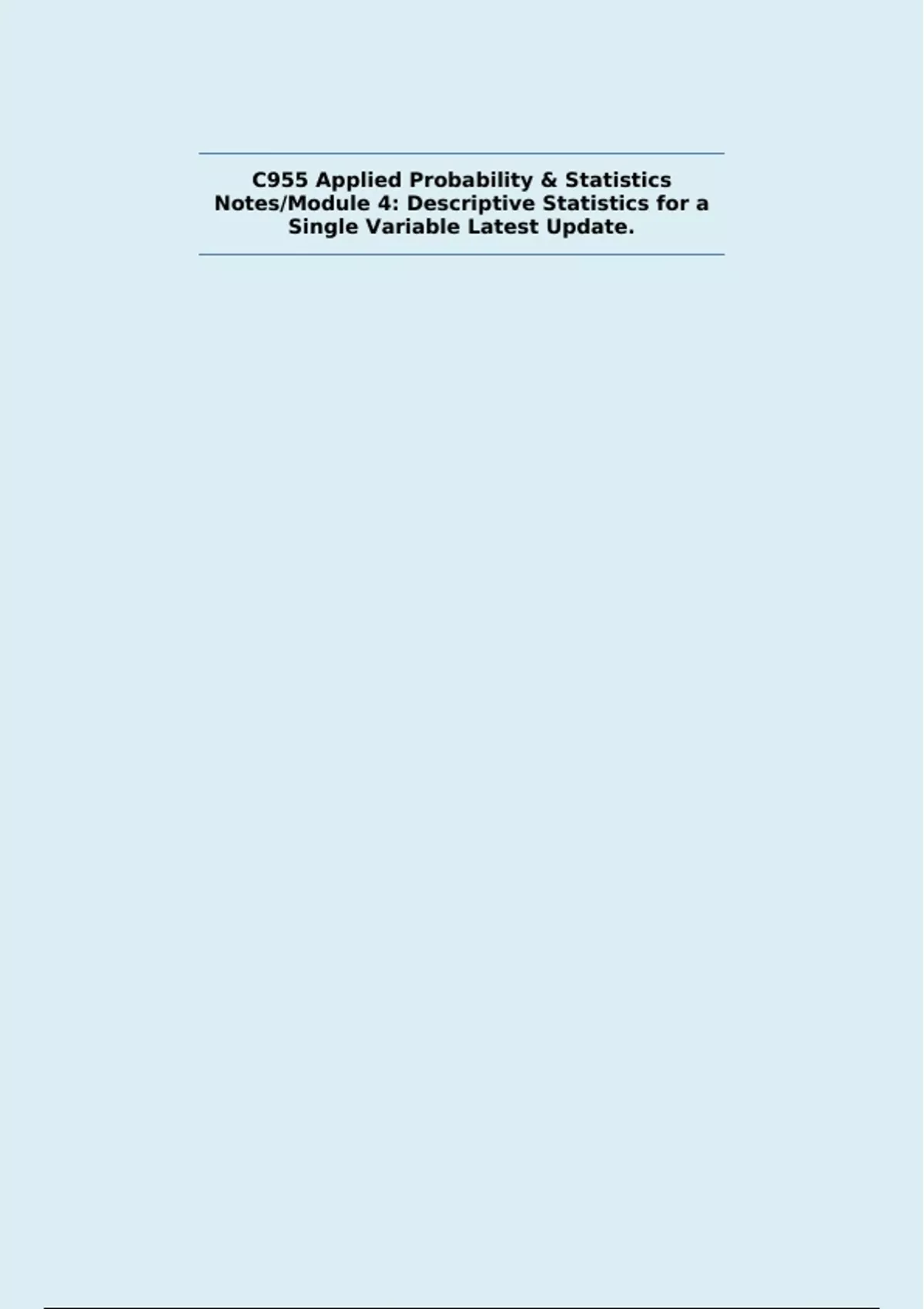 C955 Applied Probability & Statistics Notes/Module 4: Descriptive Statistics for a Single Variable Latest Update.
