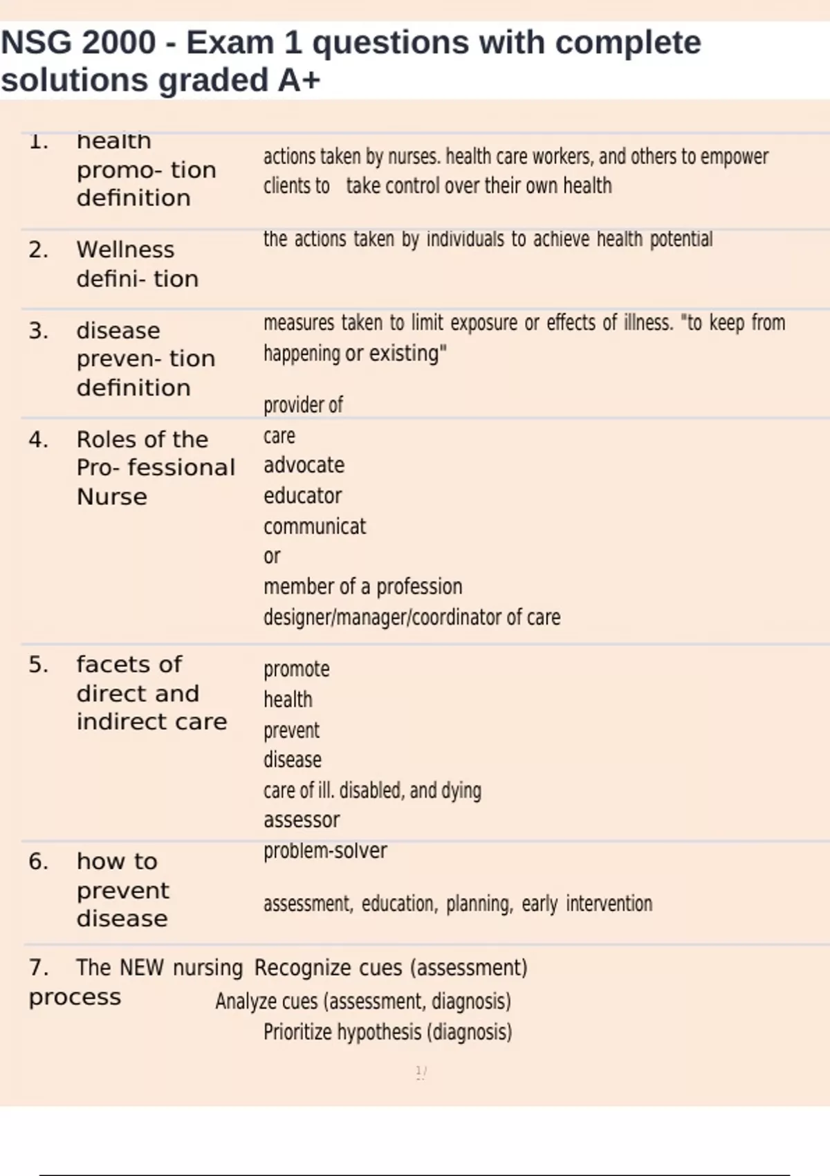 ,NSG 2000 - Exam 1 questions with complete