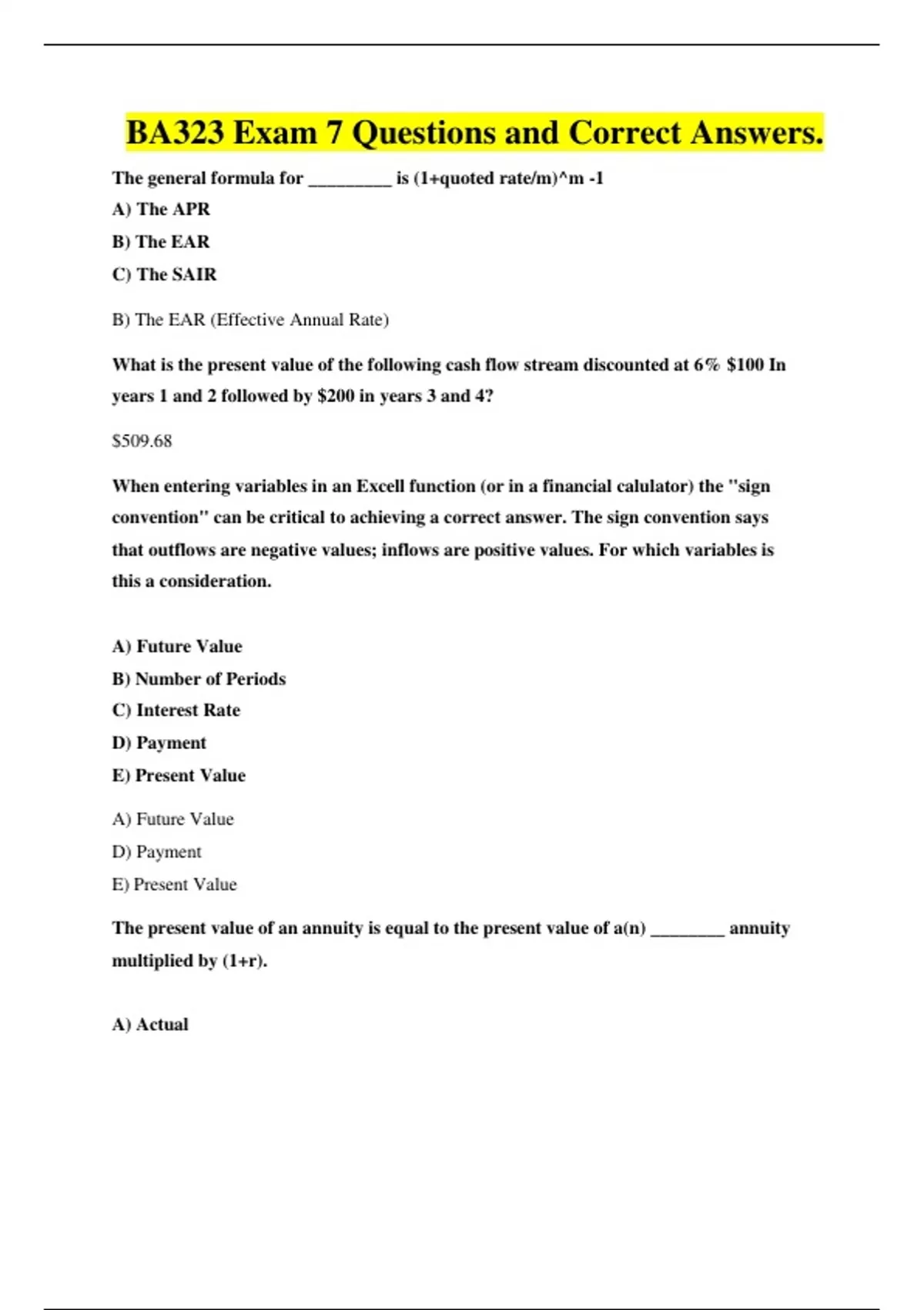 BA323 Exam 7 Questions and Correct Answers.