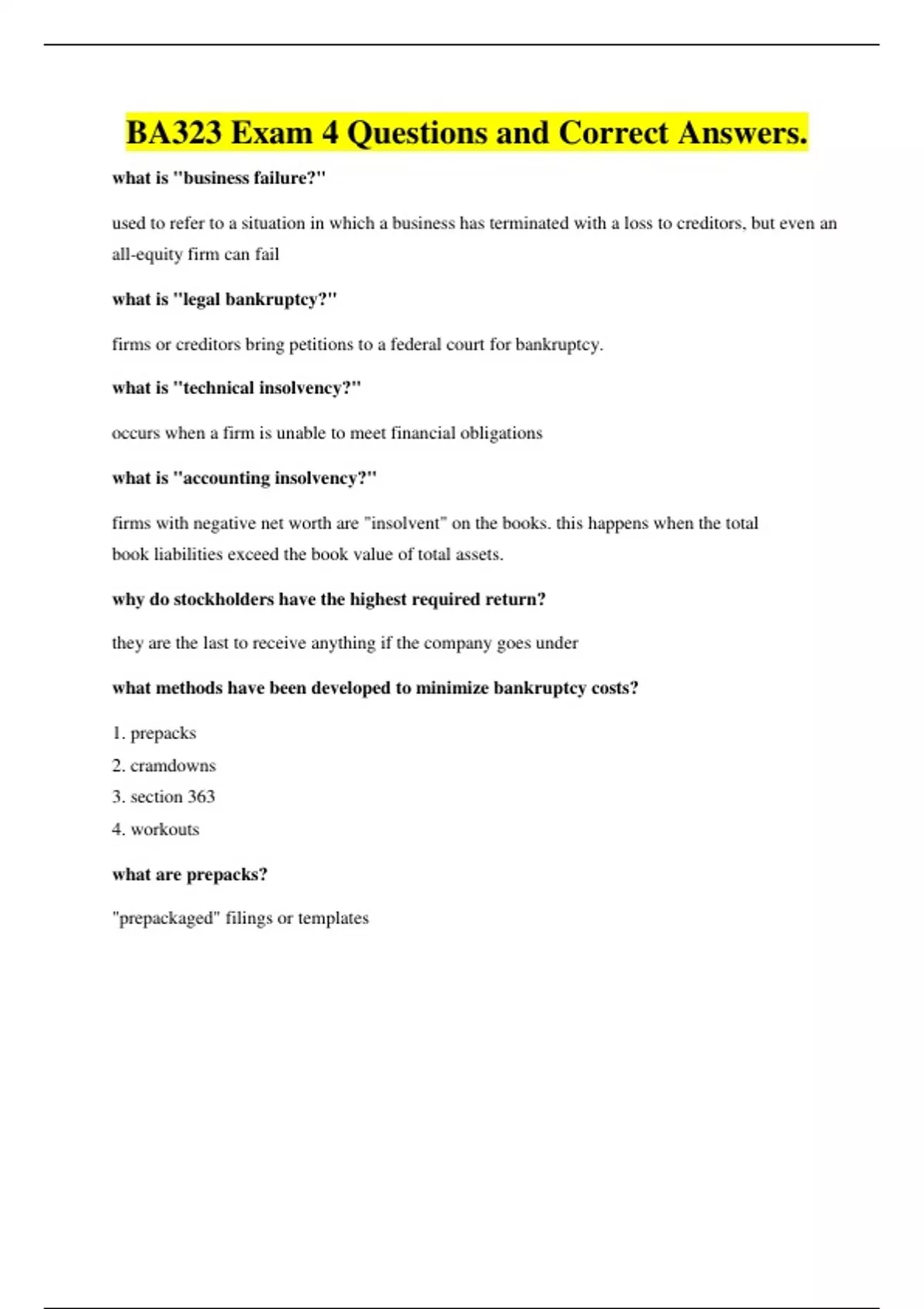 BA323 Exam 4 Questions and Correct Answers.