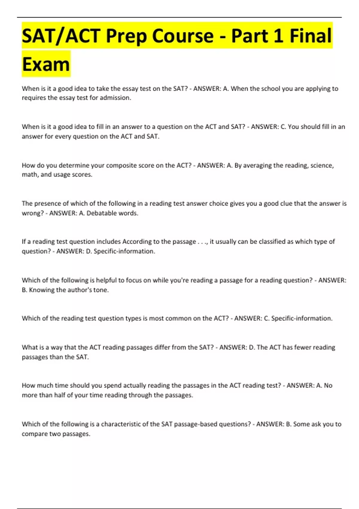 answer for every question on the ACT and SAT.