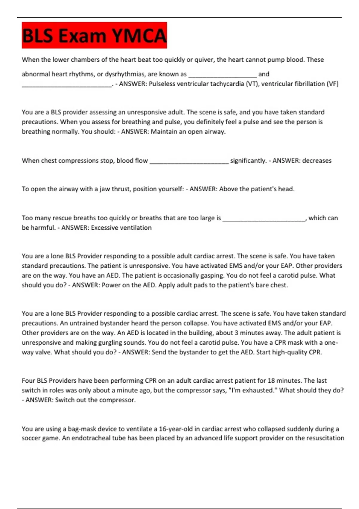 Exam of 3 pages for the course BLS Exa YMCA at BLS Exa YMCA (BLS Exam YMCA)