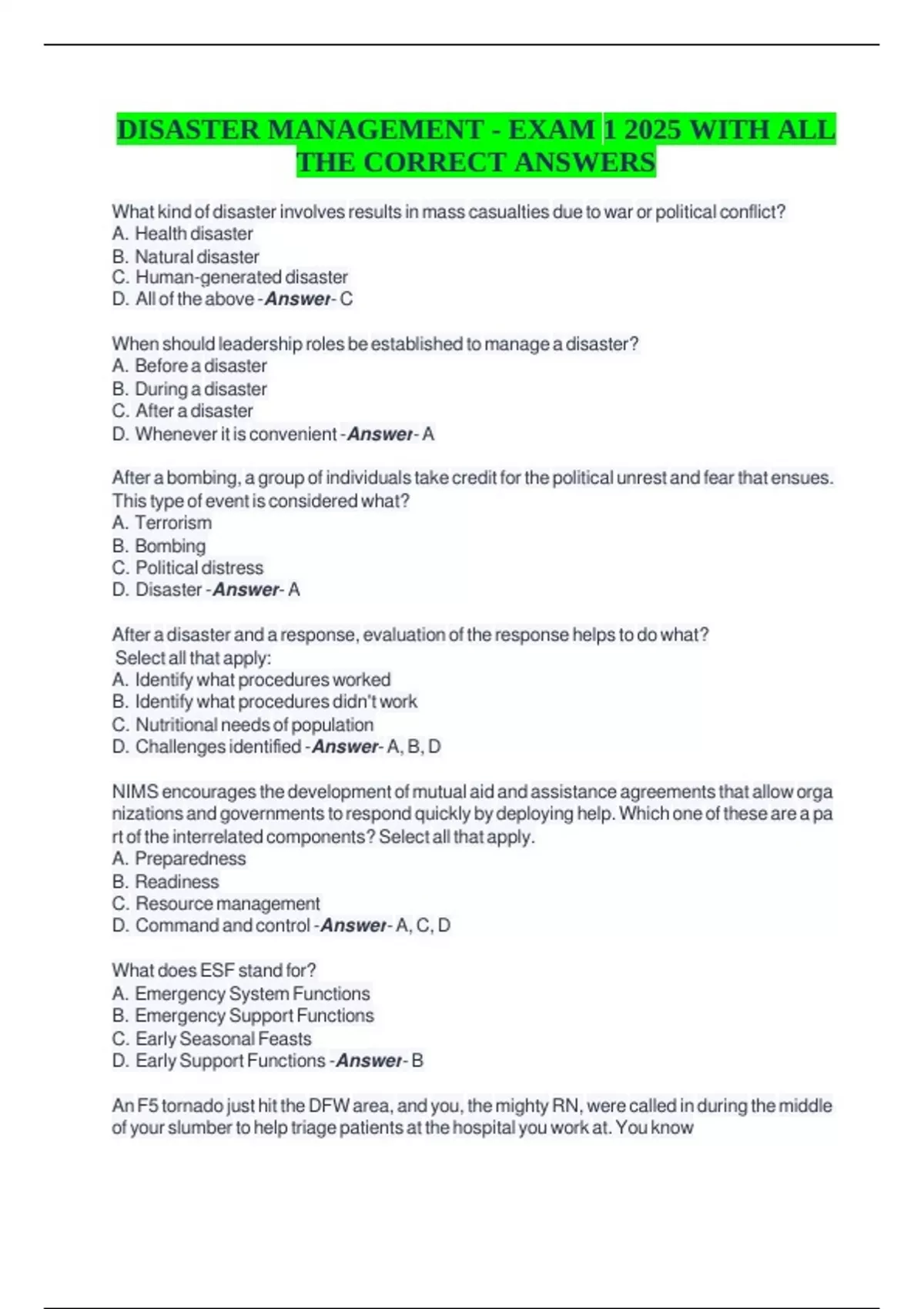 D. Health and Human Services; ESF8 -Answer- D y y y y y y
