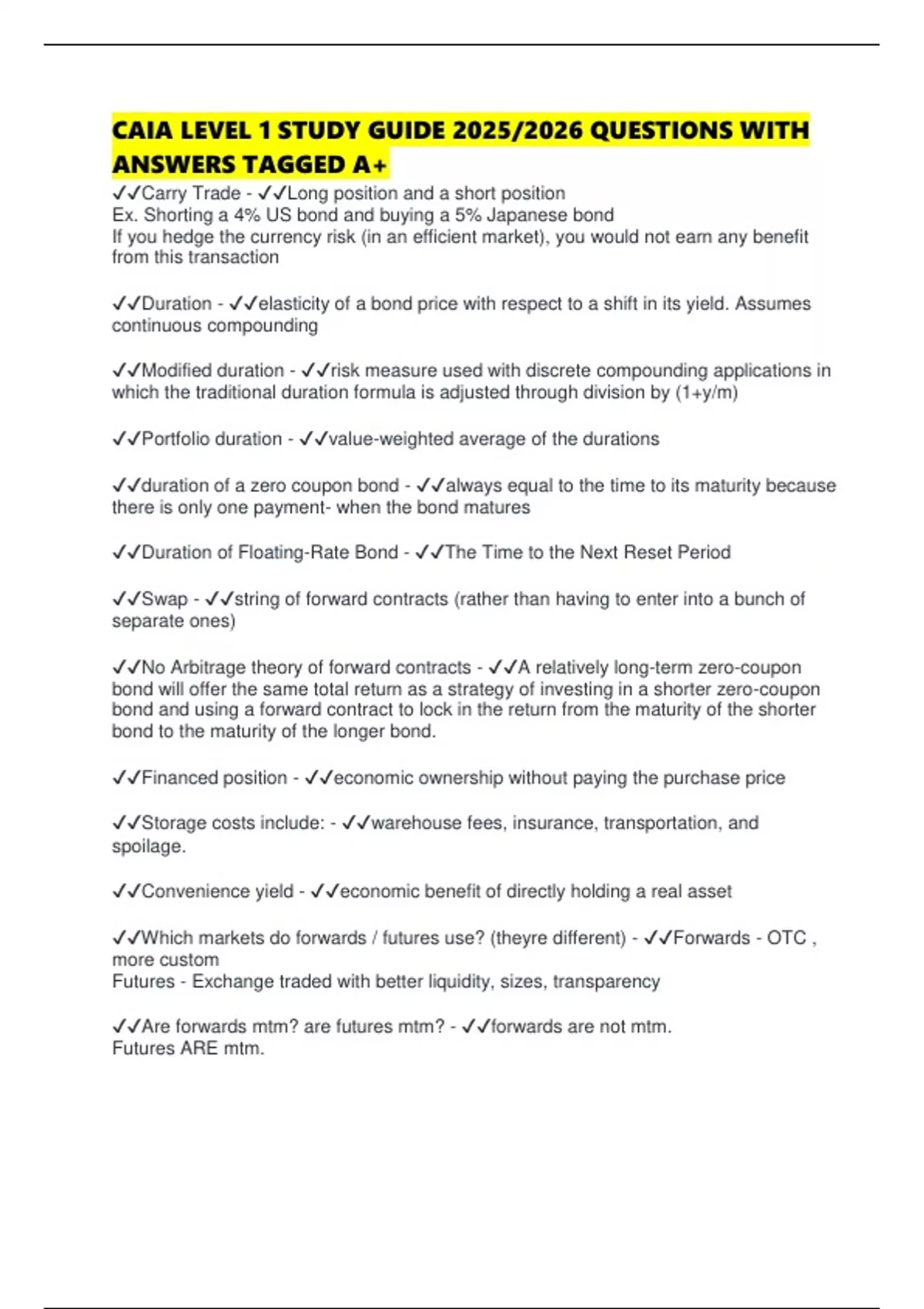 CAIA LEVEL 1 STUDY GUIDE 2025/2026 QUESTIONS WITH ANSWERS TAGGED A+