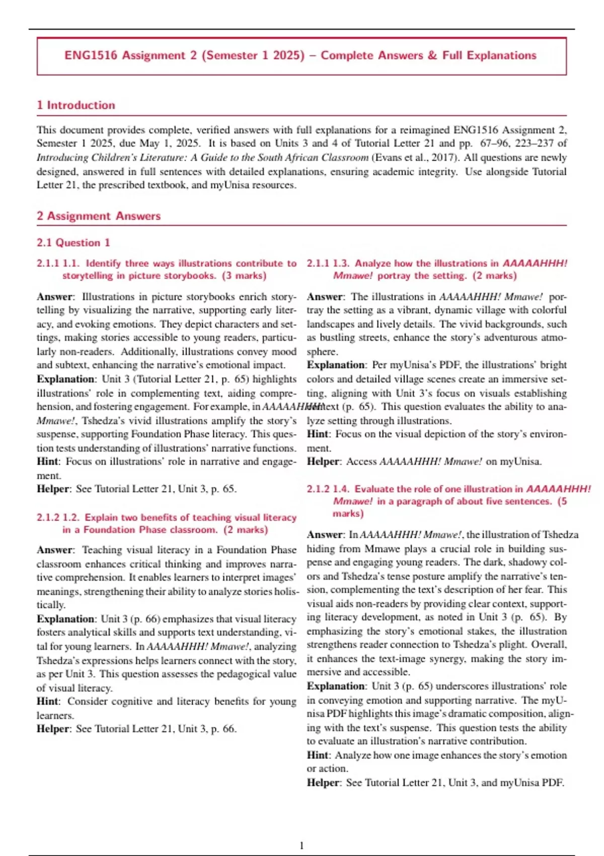 Helper: See Tutorial Letter 21, Unit 3, p. 65. 2.1.2 1.4. Evaluate the role of one illustration in AAAAAHHH!