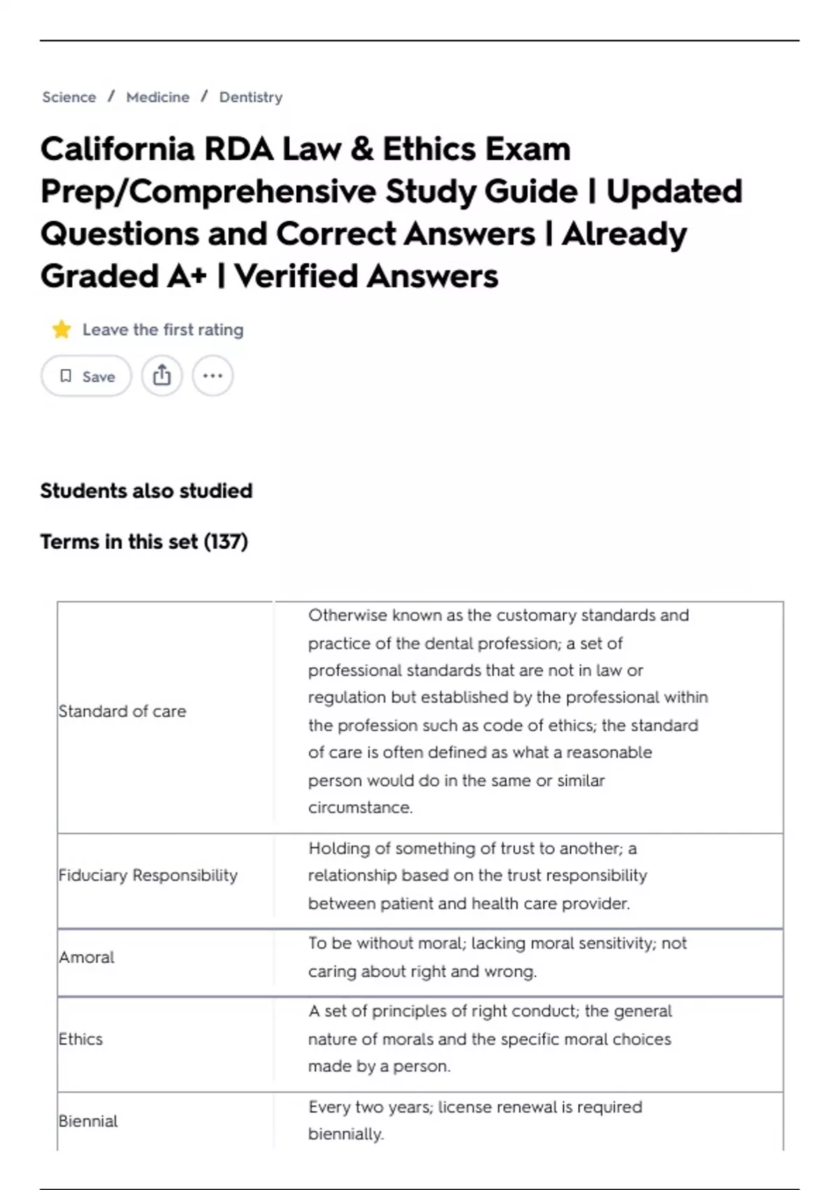 California RDA Law & Ethics Exam Prep/Comprehensive Study Guide | Updated Questions and Correct Answers | Already Graded A+ | Verified Answers