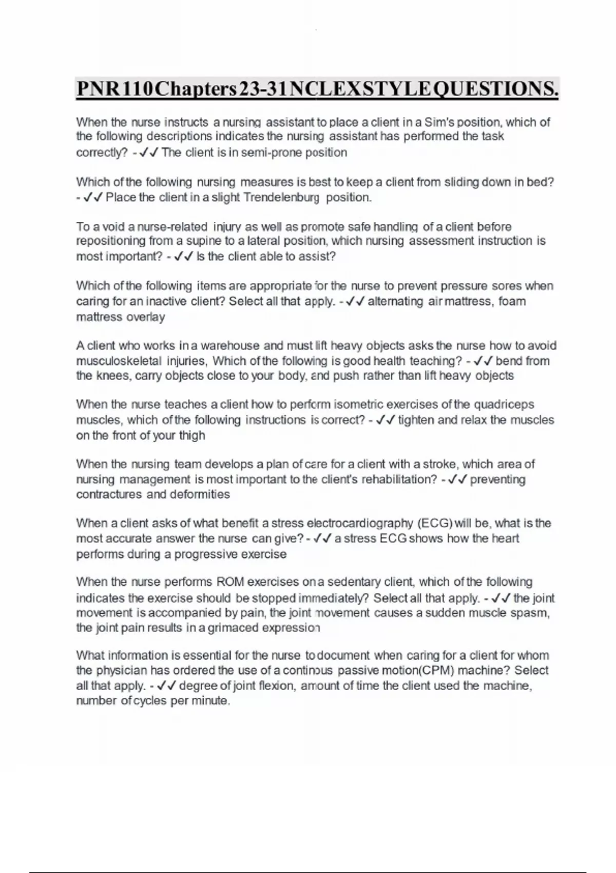 PNR 110 Chapters 23-31 NCLEX STYLE QUESTIONS.