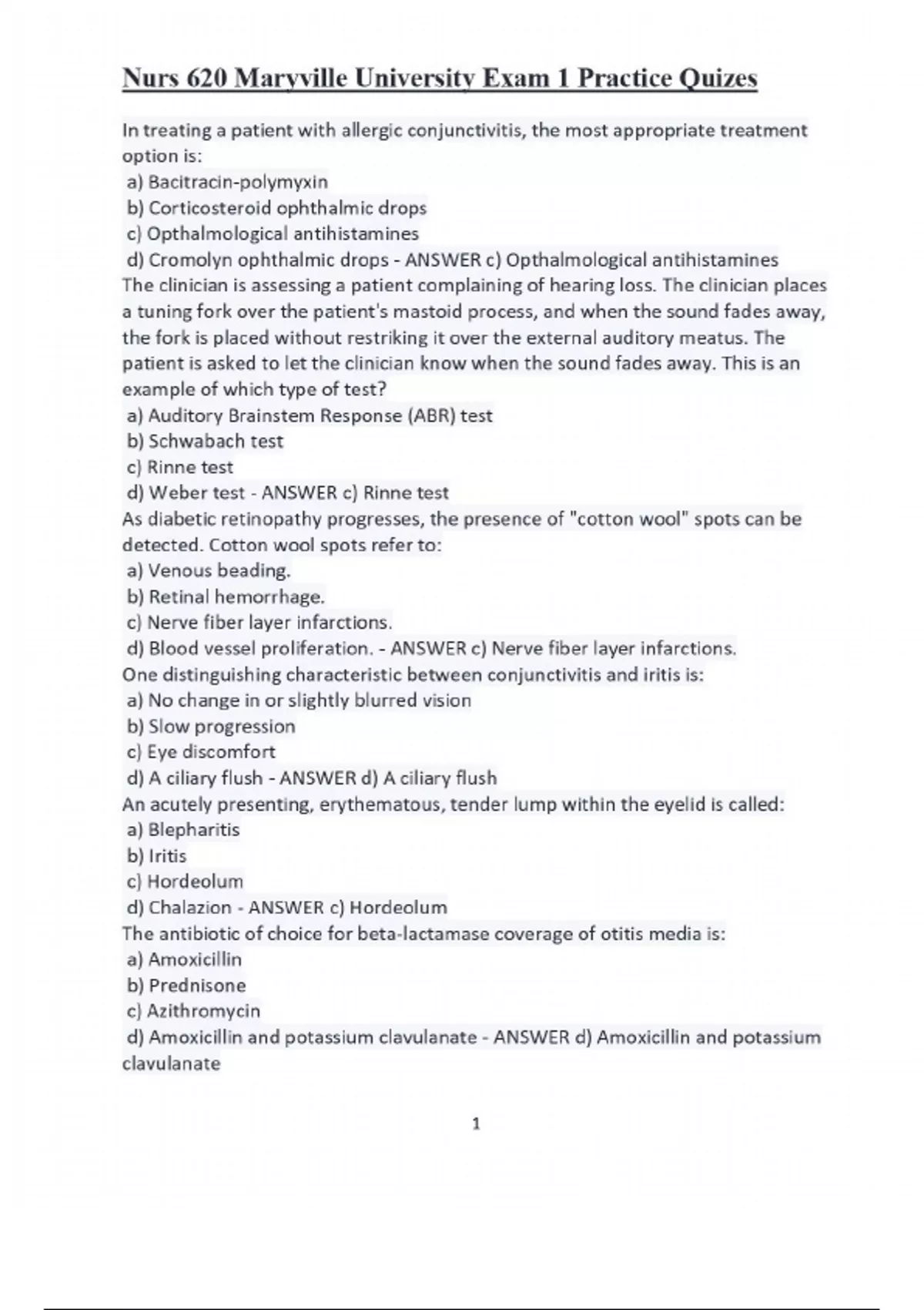 nurs 620 maryville exam 1 stu