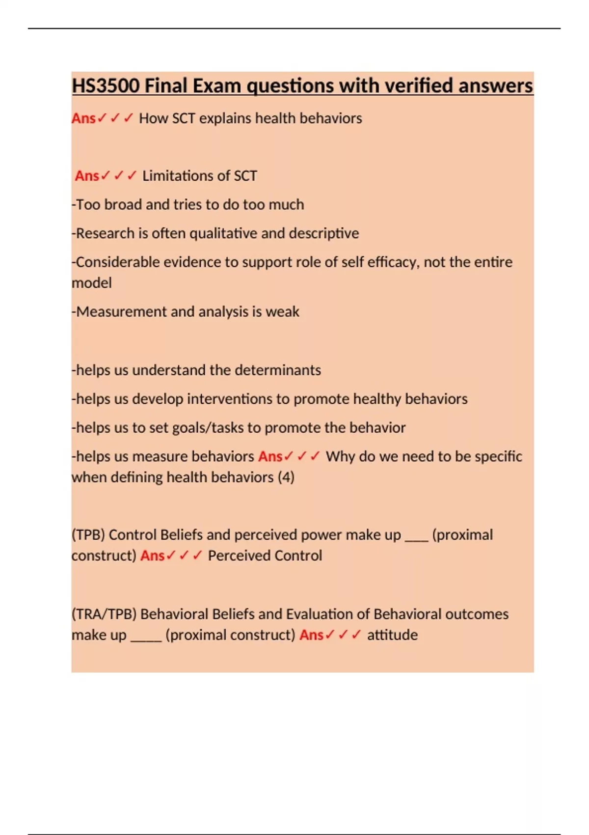 HS3500 Final Exam questions with verified answers.