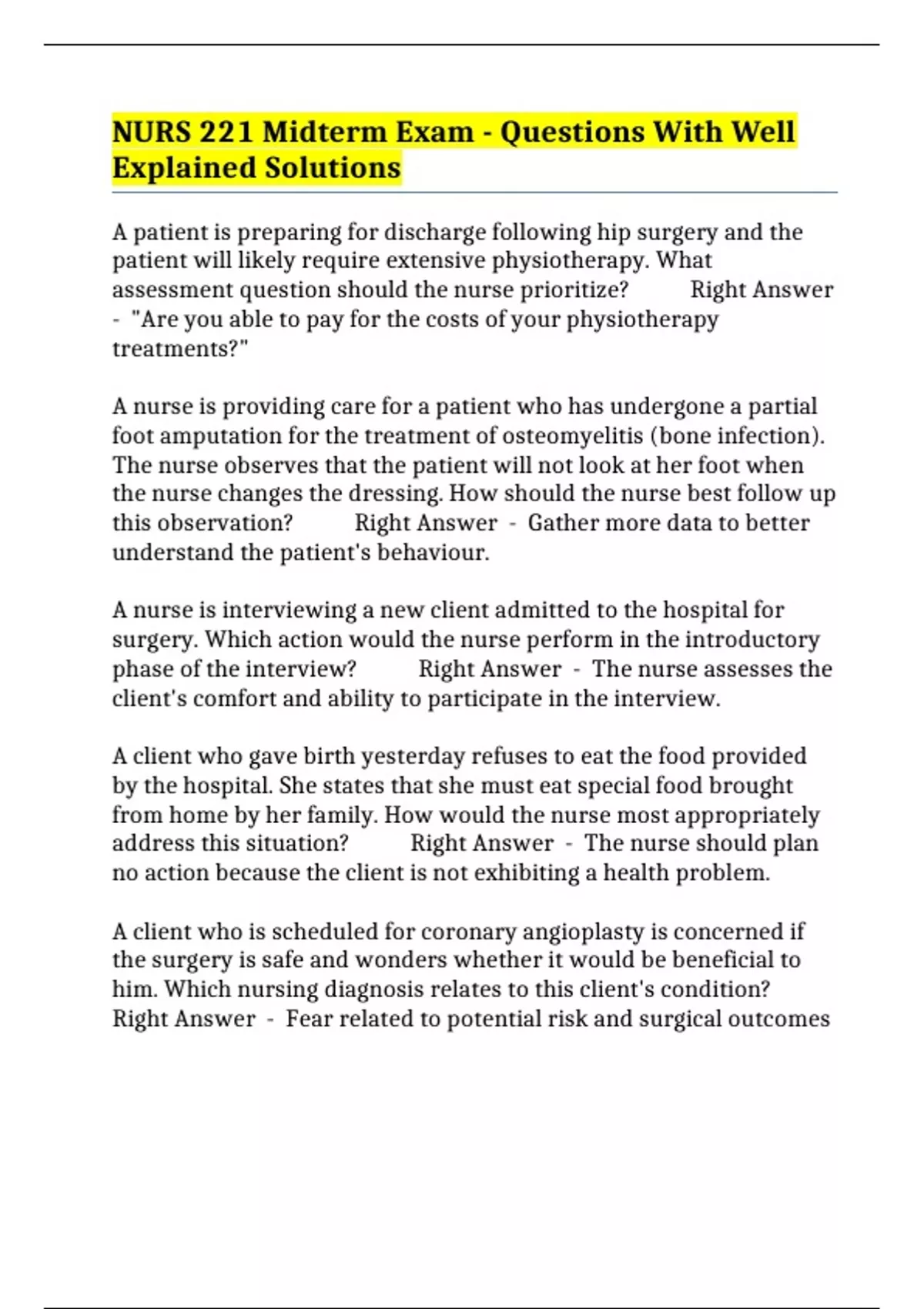 assessment question should the nurse prioritize? Right Answer