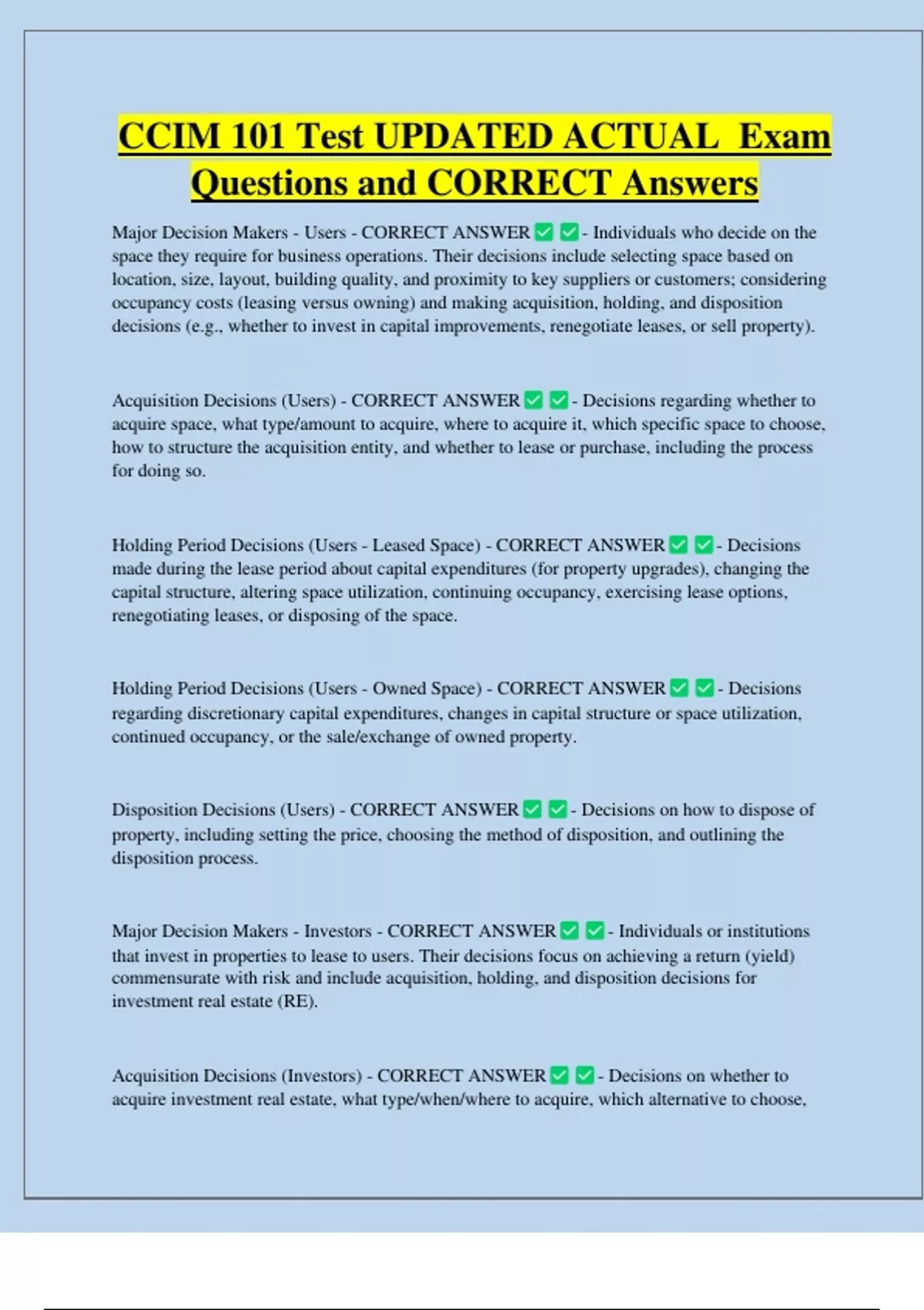 Holding Period Decisions (Users - Owned Space) - CORRECT ANSWER - Decisions