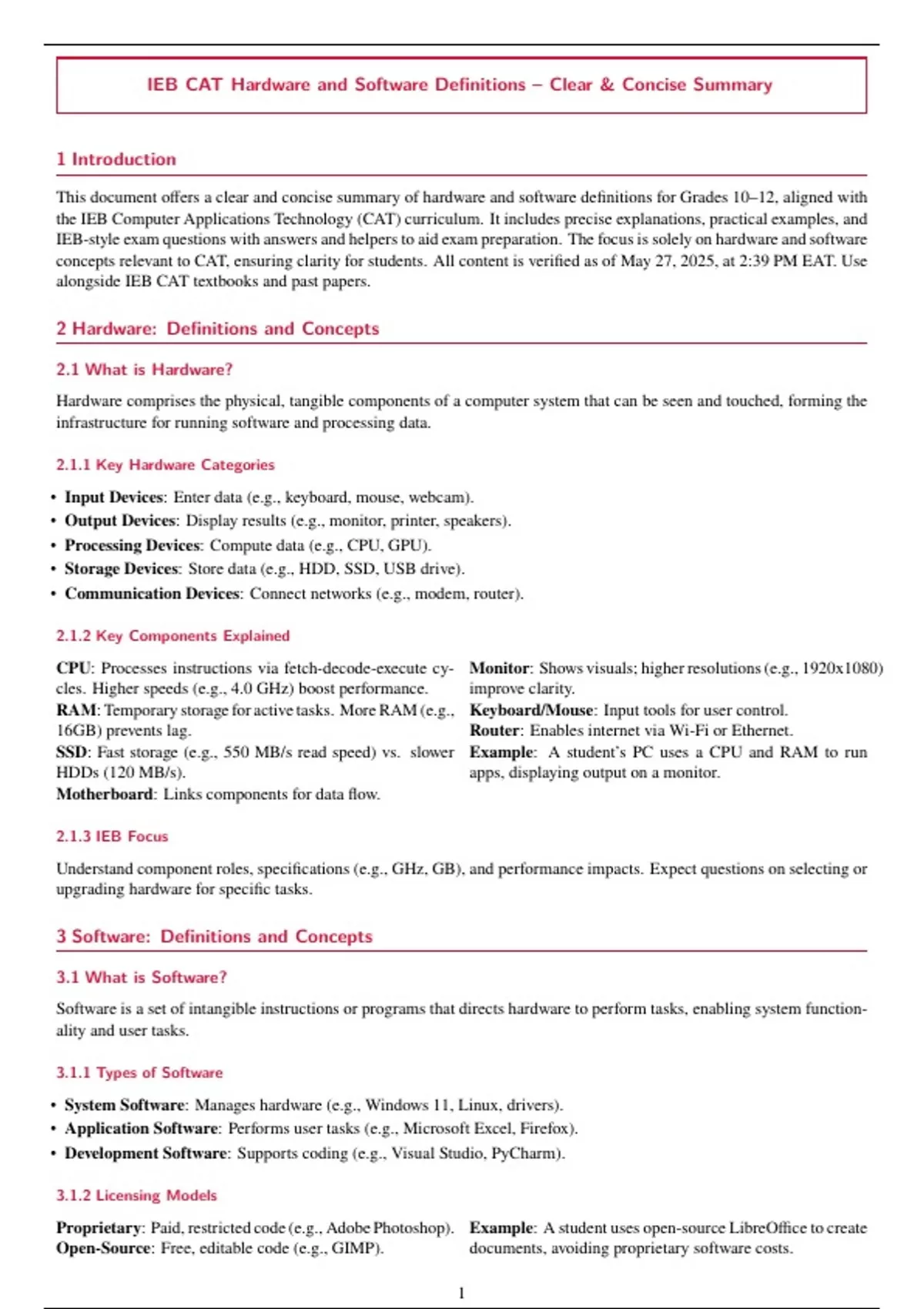 IEB-style exam questions with answers and helpers to aid exam preparation. The focus is solely on hardware and software