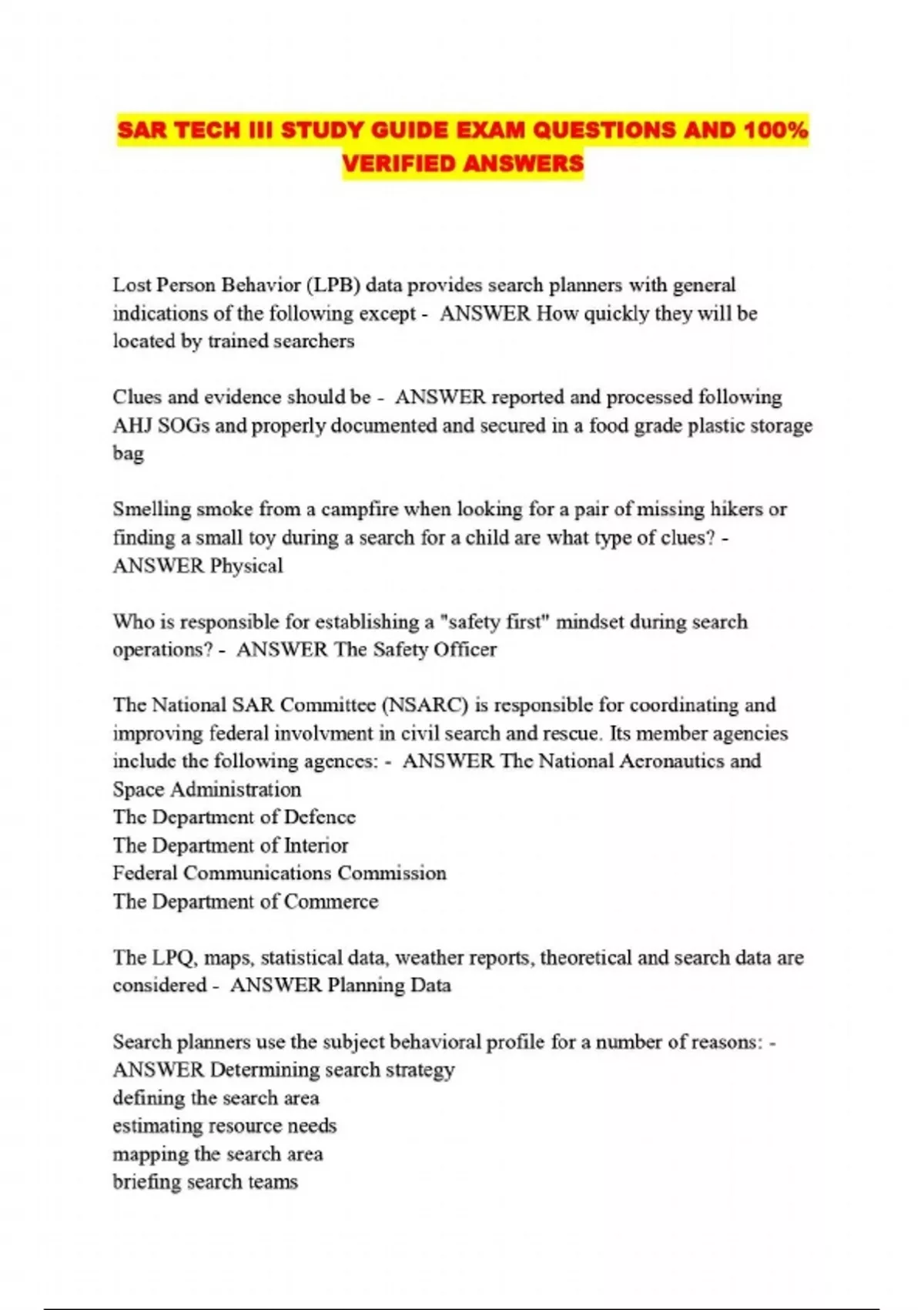 SAR TECH III STUDY GUIDE EXAM QUESTIONS AND 100% VERIFIED ANSWERS....
