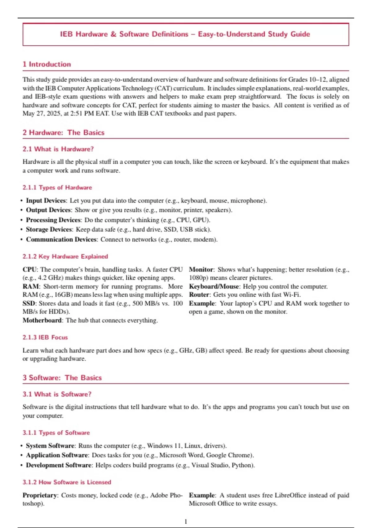 IEB Hardware & Software Definitions– Easy-to-Understand Study Guide 1 Introduction