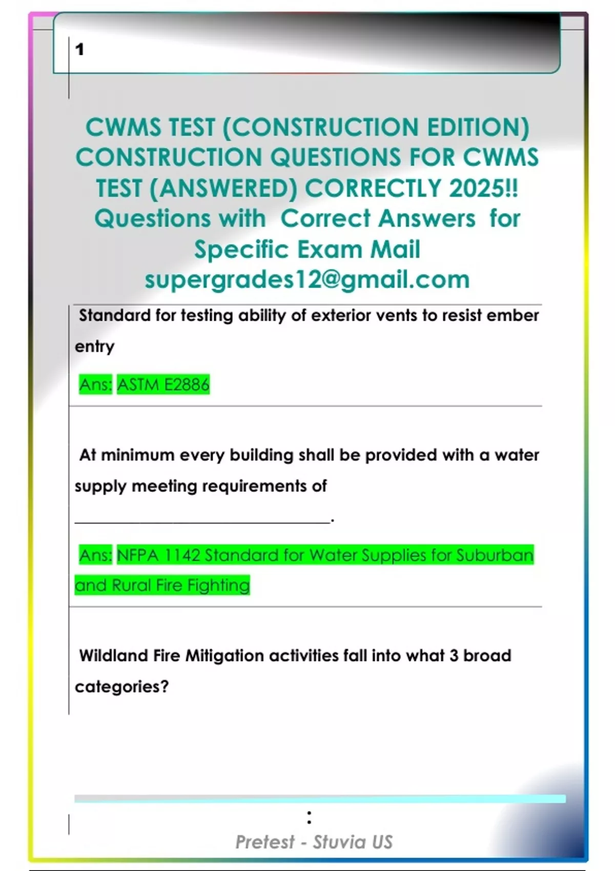 CWMS TEST (CONSTRUCTION EDITION) CONSTRUCTION QUESTIONS FOR CWMS TEST (ANSWERED) CORRECTLY 2025!!