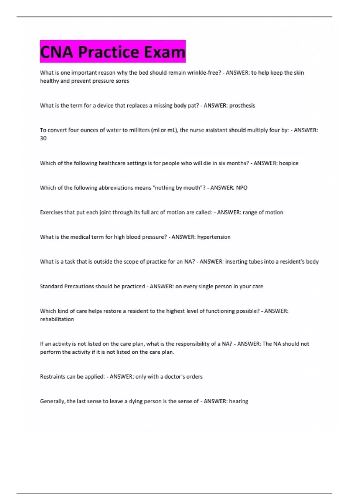 - CNA Practice ExaCNA