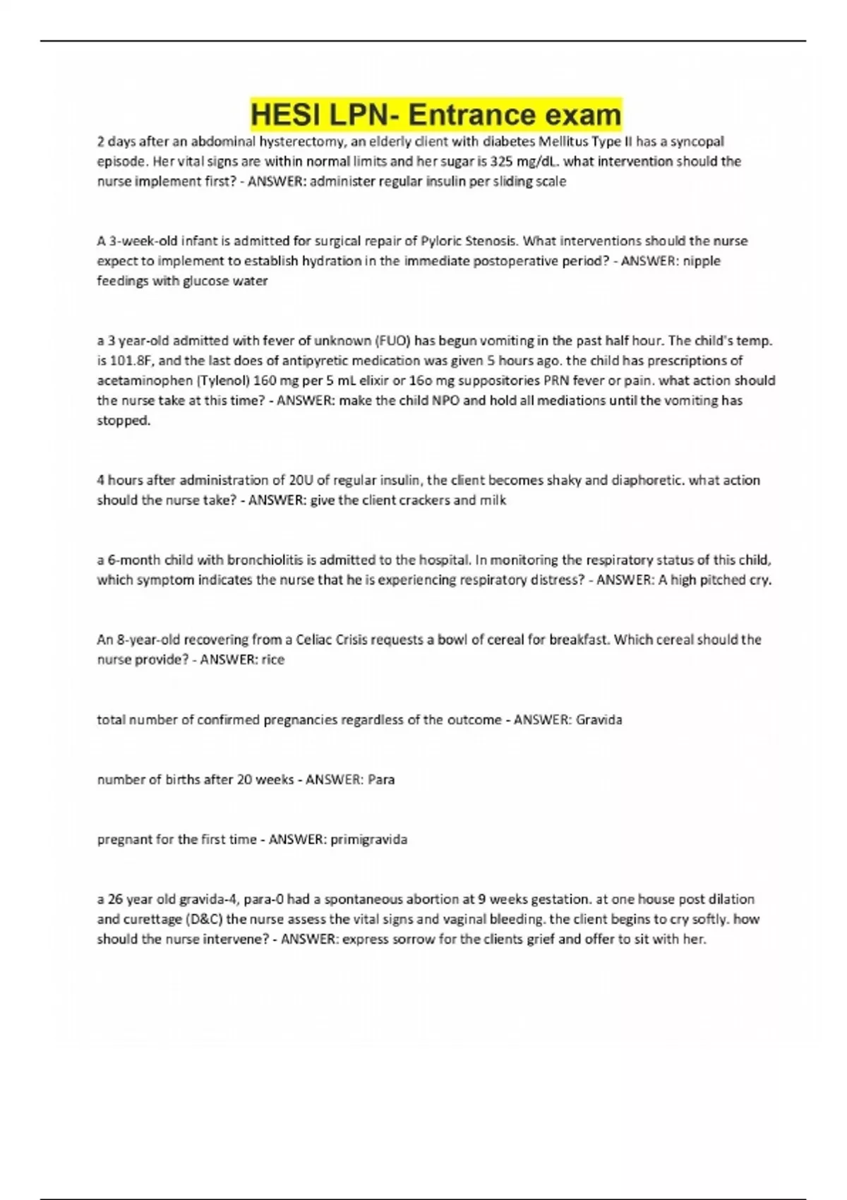 Exam of 12 pages for the course HESI LPN- Entrance at HESI LPN- Entrance (HESI LPN- Entrance)