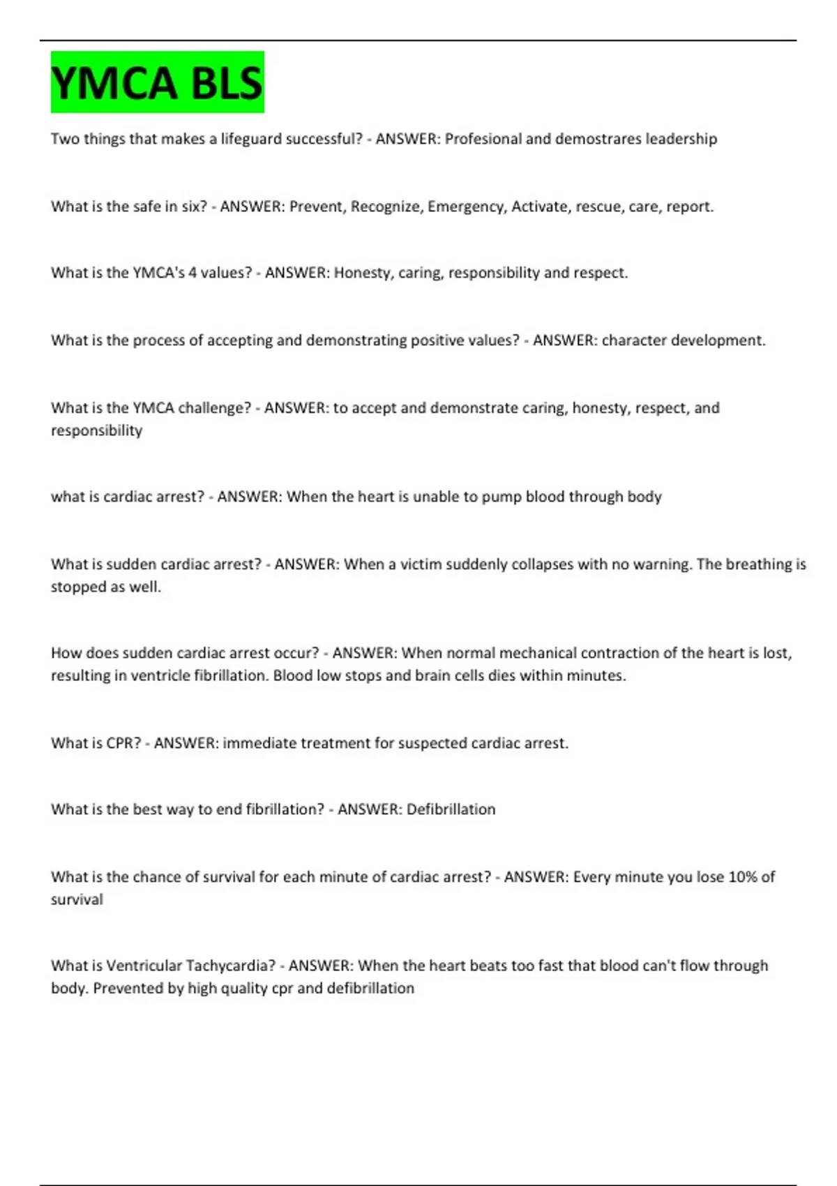 Exam of 7 pages for the course YMCA BLS at YMCA BLS (YMCA BLS)