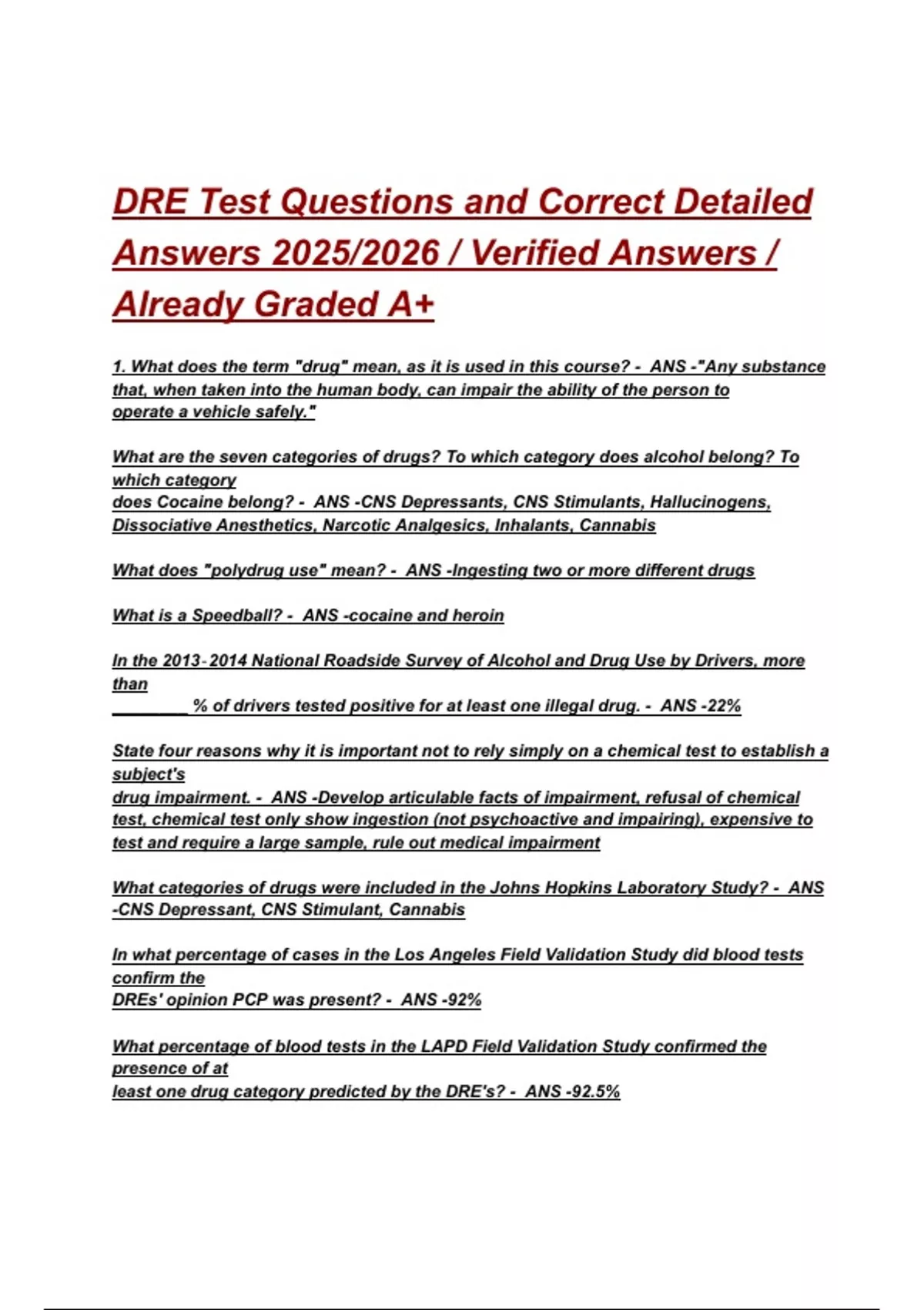 DRE Test Questions and Correct Detailed