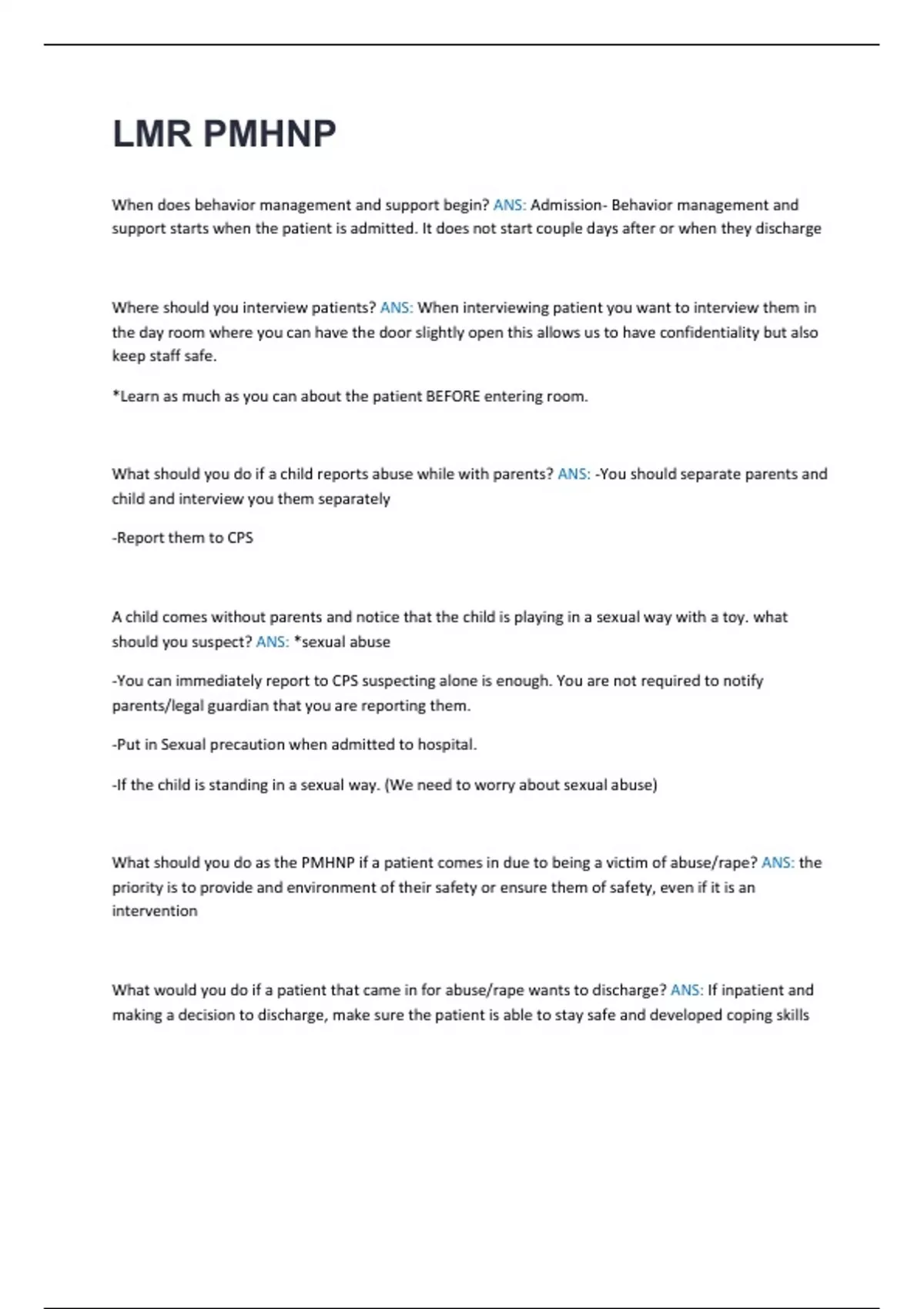 What should you do as the PMHNP if a patient comes in due to being a victim of abuse/rape? ANS: the