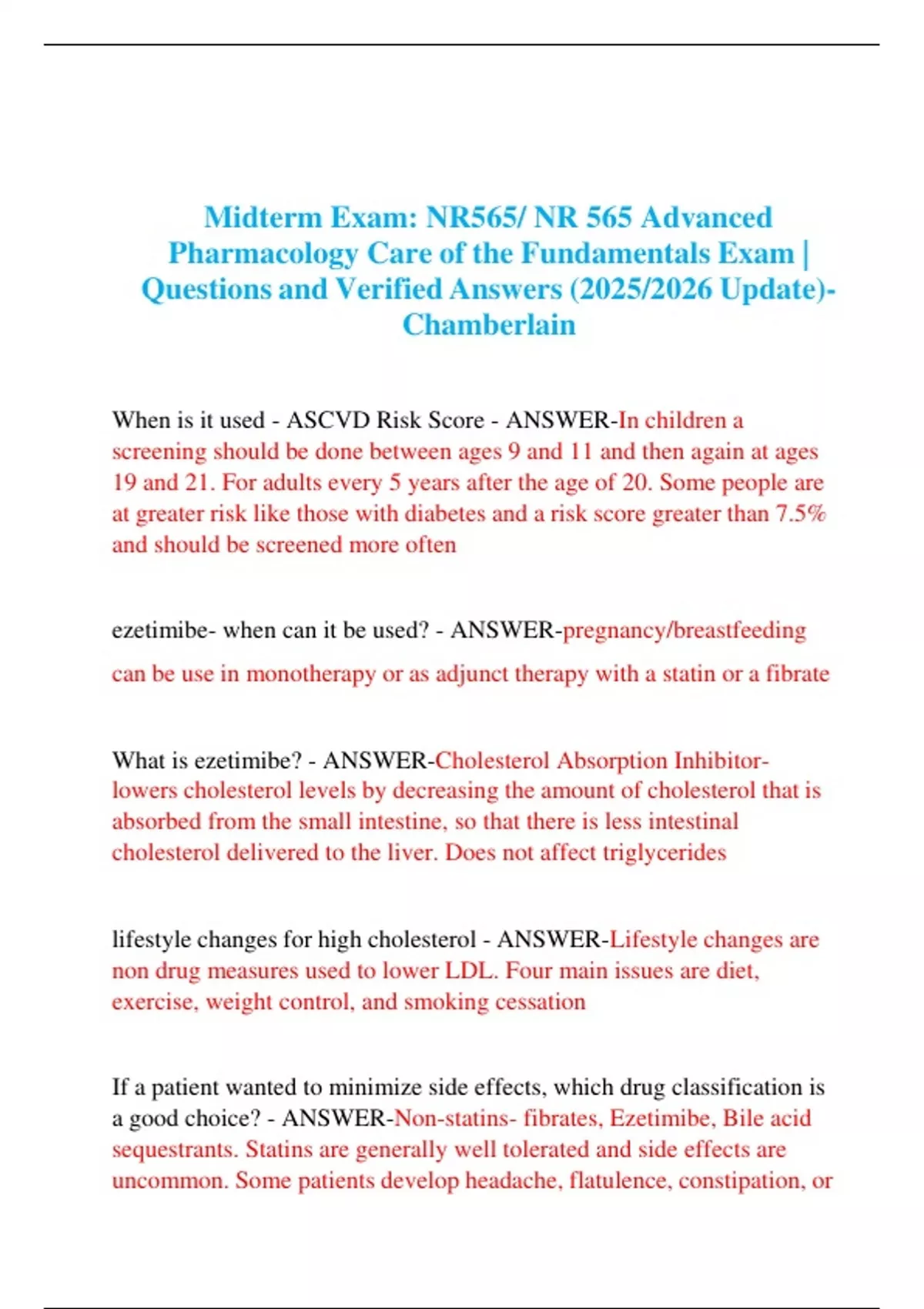 What is ezetimibe? - ANSWER-Cholesterol Absorption Inhibitor-