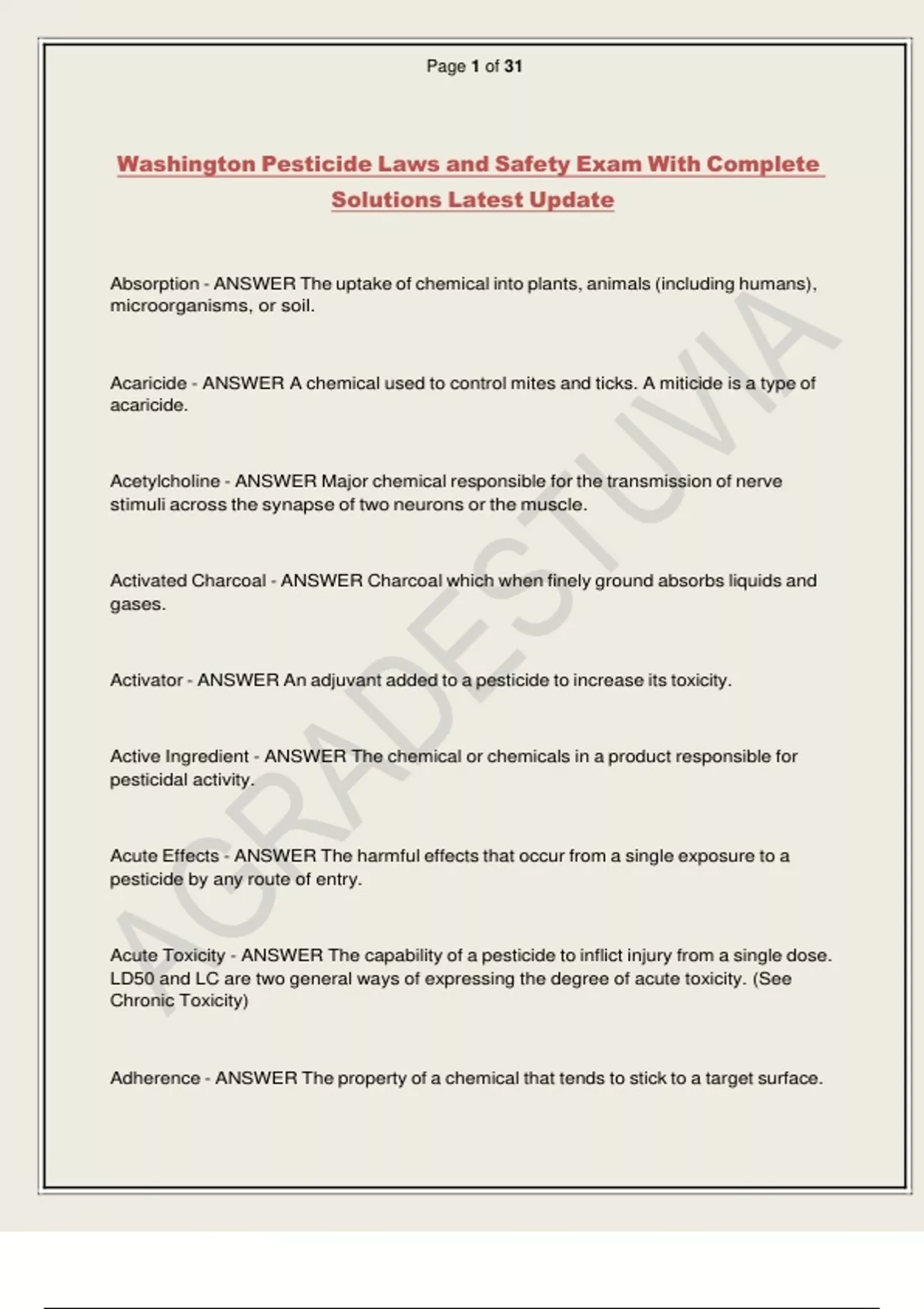 Washington Pesticide Laws and Safety Exam With Complete