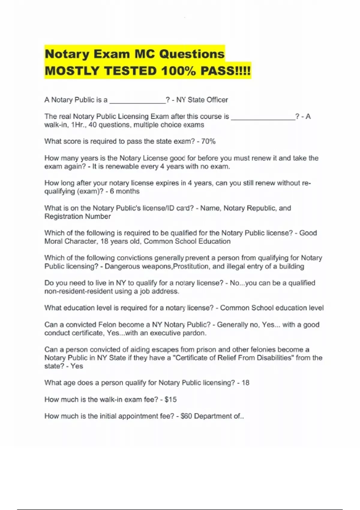 Notary Exam MC Questions MOSTLY TESTED 100- PASS!!!! Notary Exam MC Questions MOSTLY TESTED 100- PASS!!!!