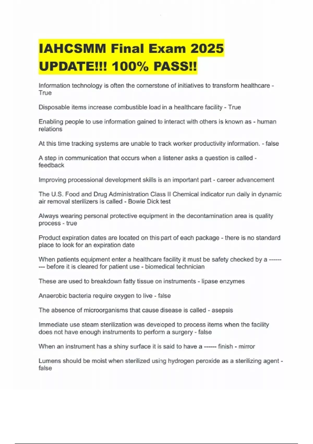 IAHCSMM Final Exam 2025 UPDATE!!! 100- PASS!!. IAHCSMM Final Exam 2025 UPDATE!!! 100- PASS!!.