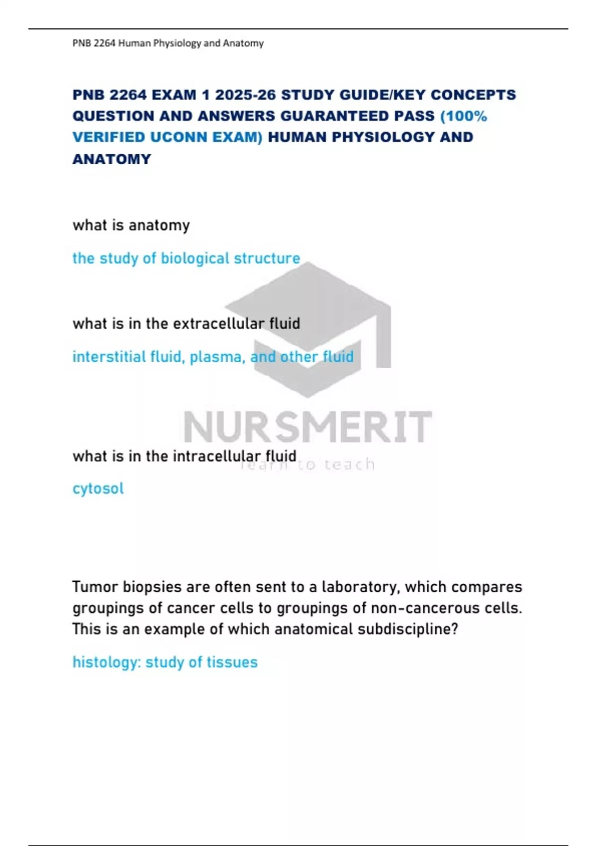 VERIFIED UCONN EXAM) HUMAN PHYSIOLOGY AND
