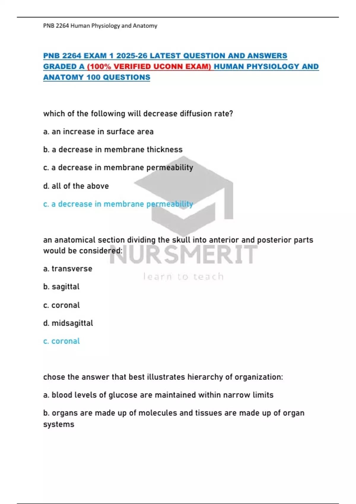 PNB 2264 EXAM 1 2025-26 LATEST QUESTION AND ANSWERS GRADED A (100% VERIFIED UCONN EXAM) HUMAN PHYSIOLOGY AND ANATOMY 100 QUESTIONS