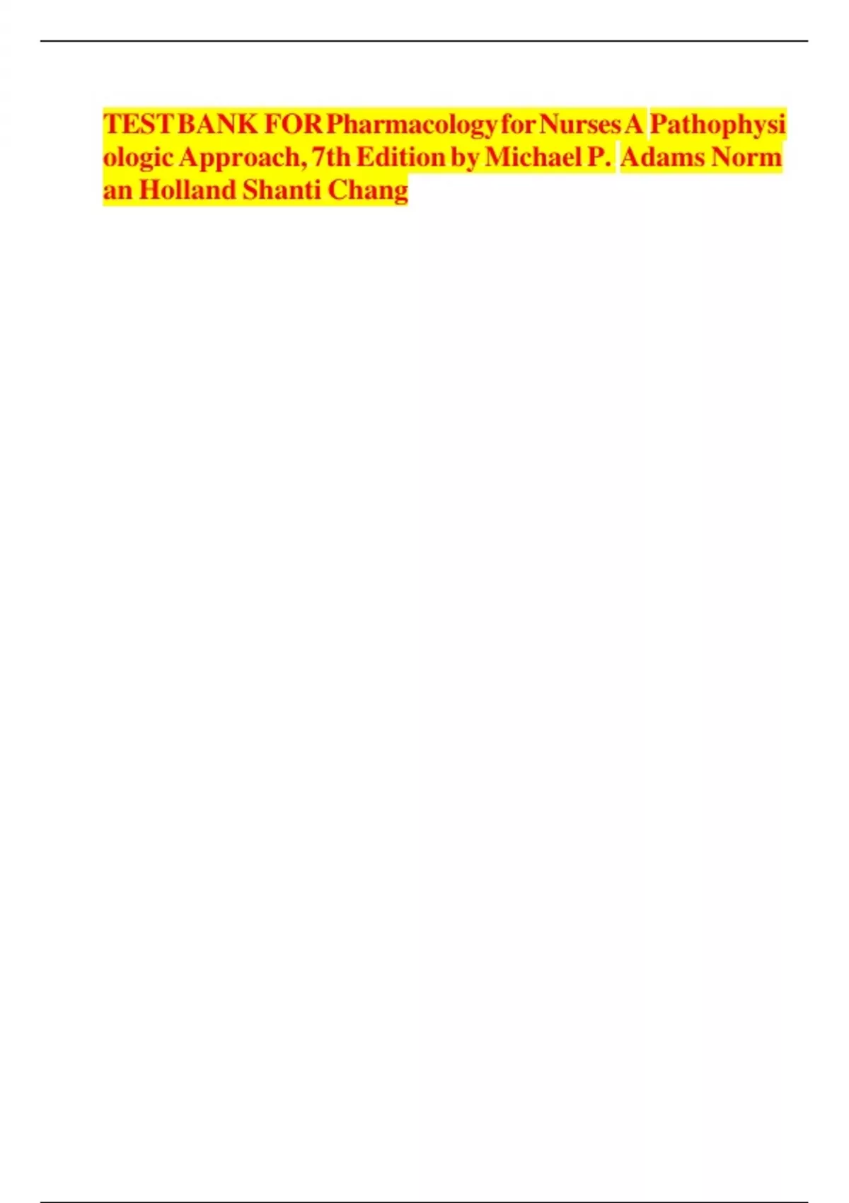 TEST BANK FOR ADAM’S PHARMACOLOGY FOR NURSES A PATHOPHYSIOLOGIC APPROACH, 7TH EDITION All CHAPTERS COMPLETE GUIDE LATEST EDITION 2024/2025 A+ RATED