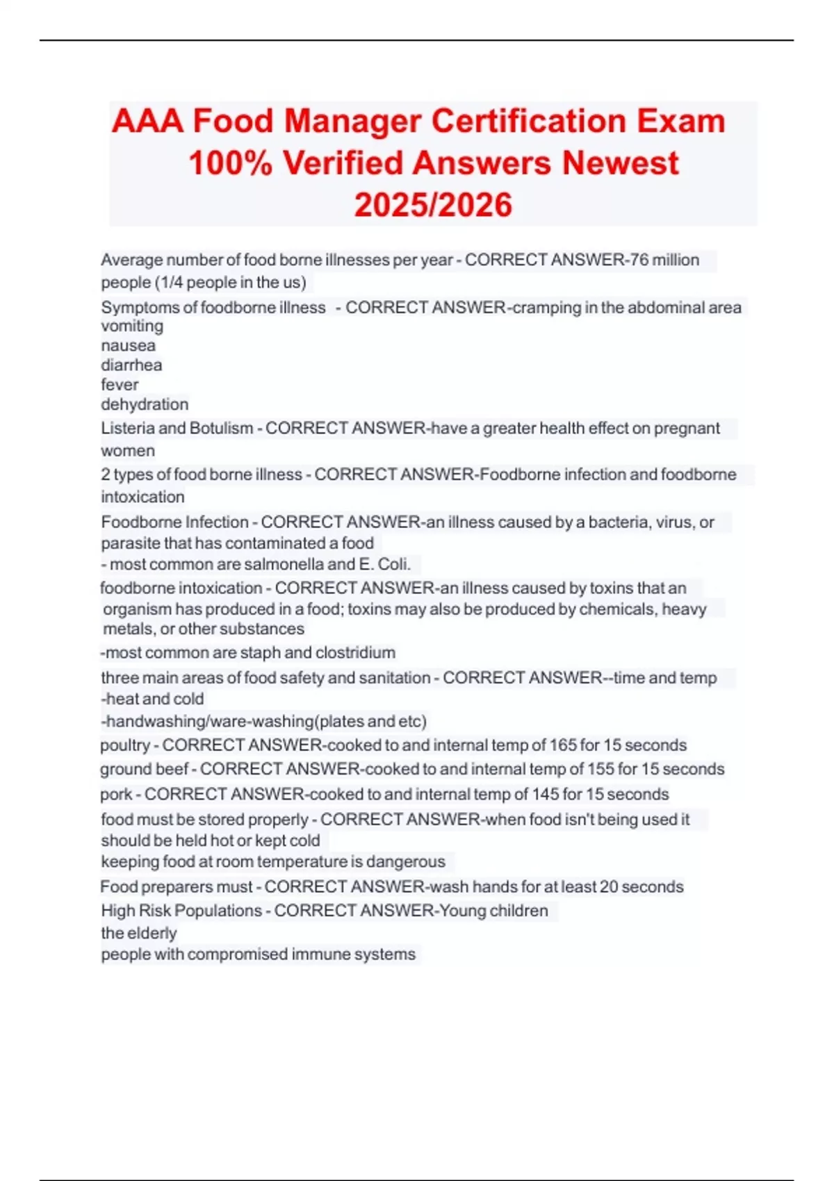 Average number of food borne illnesses per year - CORRECT ANSWER-76 million Il` Il` Il` Il` Il` Il` Il` Il` Il` Il` Il` Il`