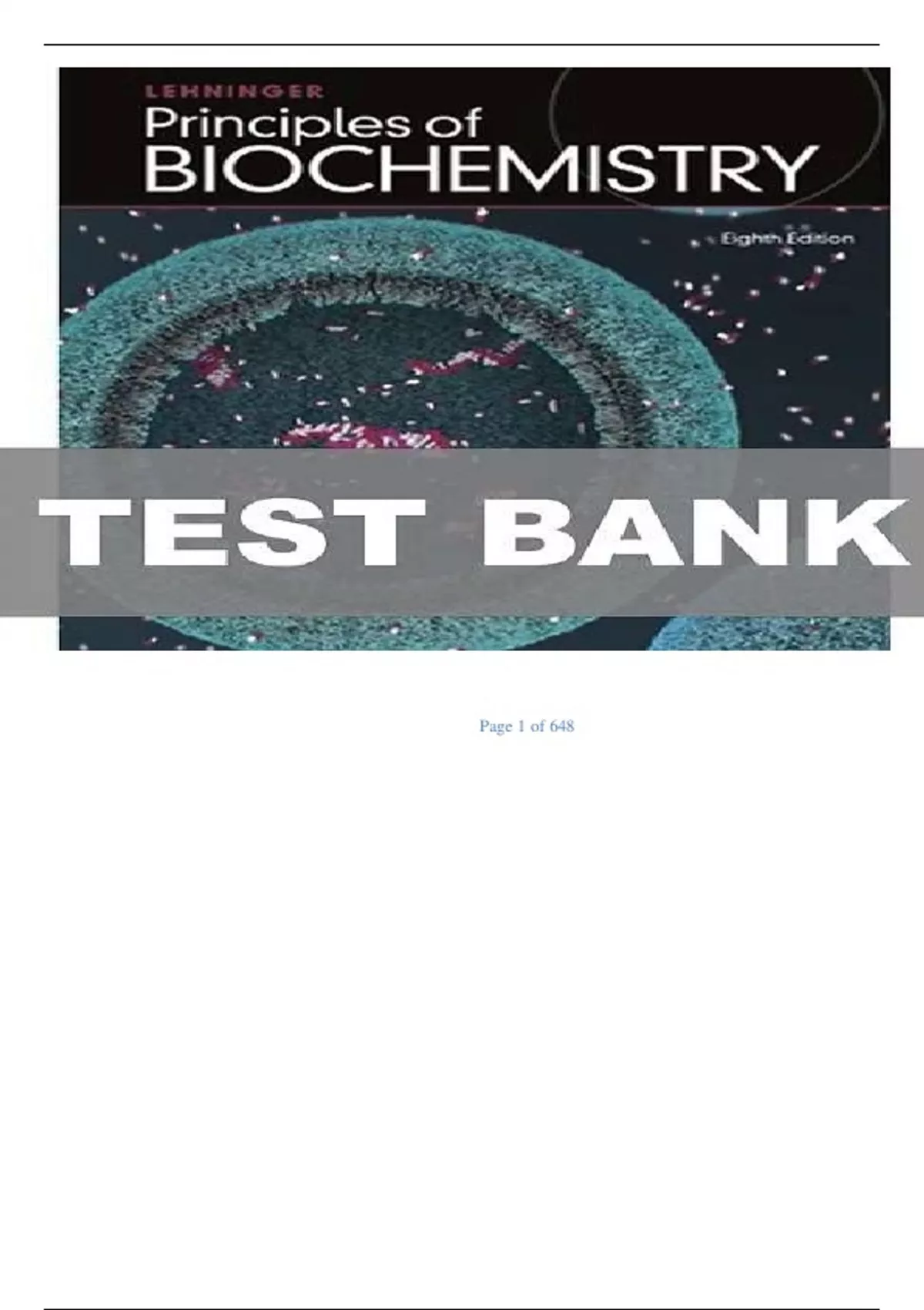 Test Bank For Lehninger Principles of Biochemistry 8th Edition By David L. Nelson; Michael M. Cox | 9781319228002 | | Chapter 1-28 | All Chapters with Answers