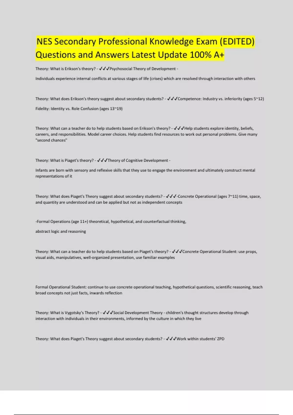 NES Secondary Professional Knowledge Exam (EDITED)