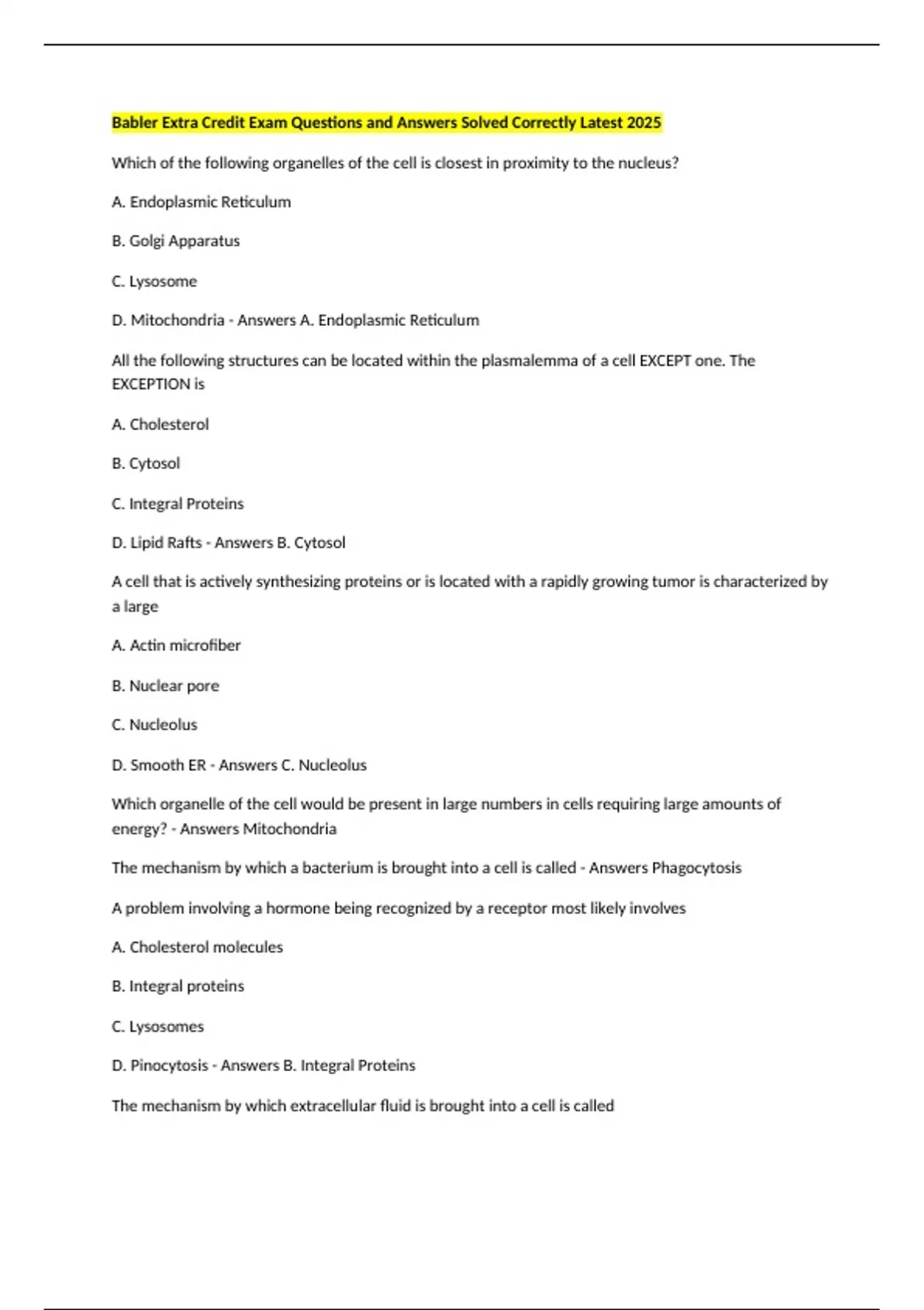 D. Mitochondria - Answers A. Endoplasmic Reticulum