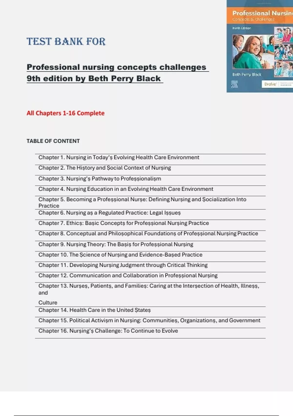 Black: Profeṣṣional Nurṣing: Conceptṣ & Challengeṣ, 9th Edition By Black