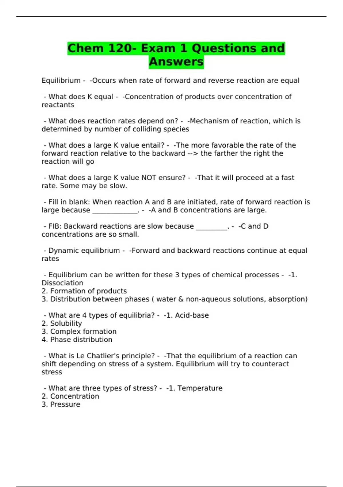 - What is Le Chatlier's principle? - -That the equilibrium of a reaction can