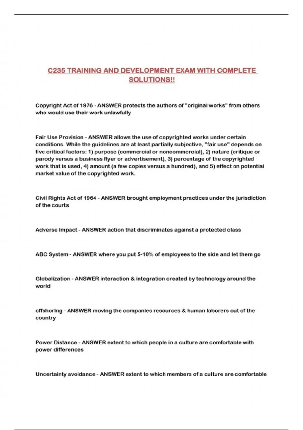 C235 TRAINING AND DEVELOPMENT EXAM WITH COMPLETE SOLUTIONS!!...