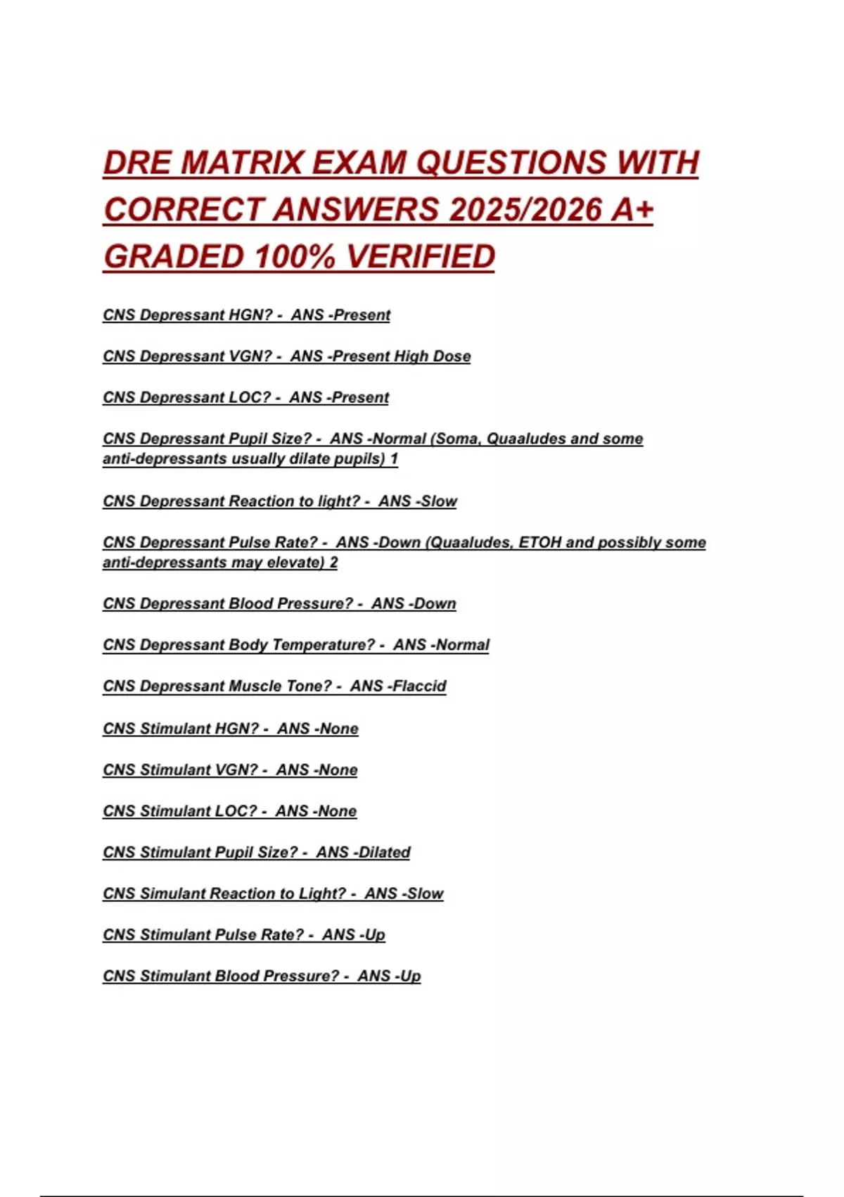 CNS Stimulant HGN? - ANS -None