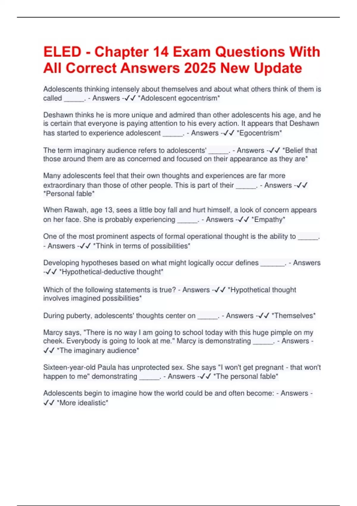 During puberty, adolescents' thoughts center on _____. - Answers -✔✔ *Themselves*
