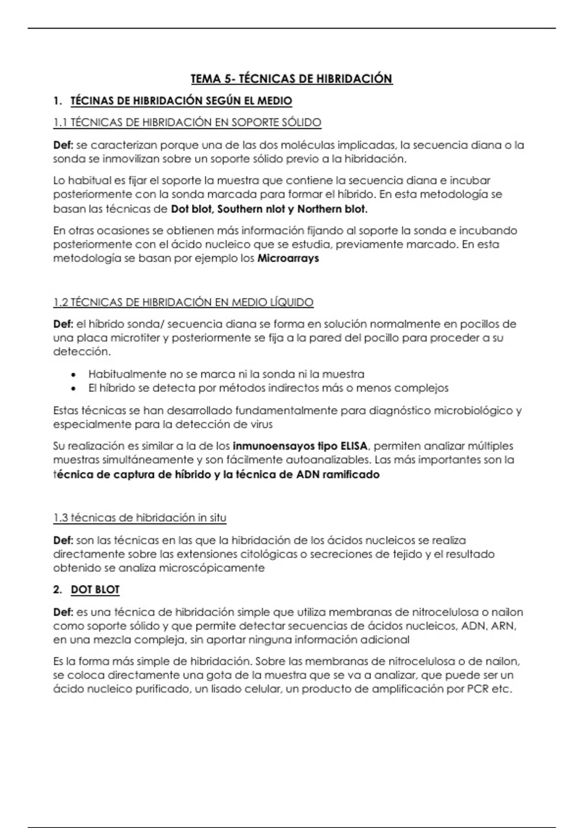 Def: son las técnicas en las que la hibridación de los ácidos nucleicos se realiza