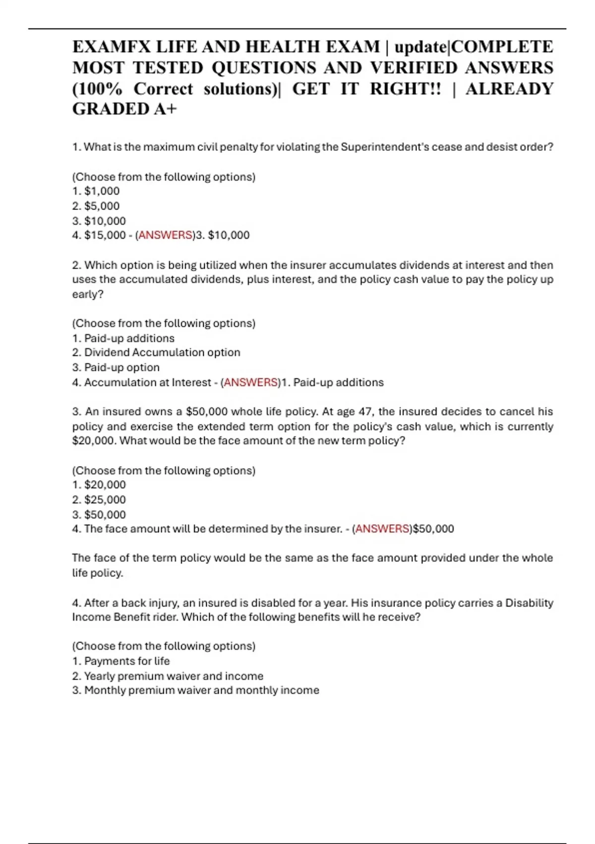 4. The face amount will be determined by the insurer. - (ANSWERS)$50,000