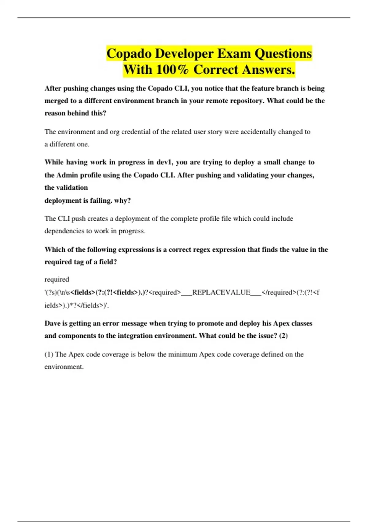 ,(2) The Apex code coverage is below the minimum Apex code coverage defined in